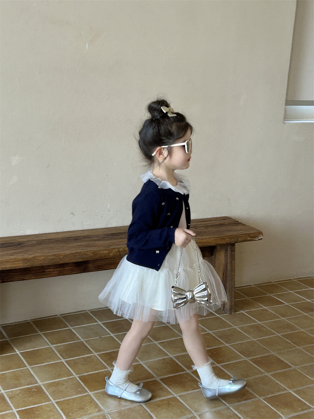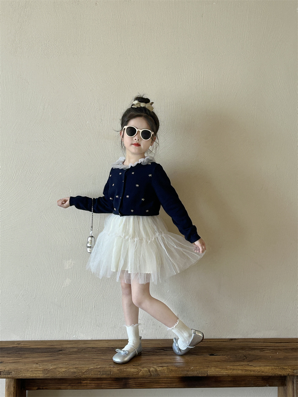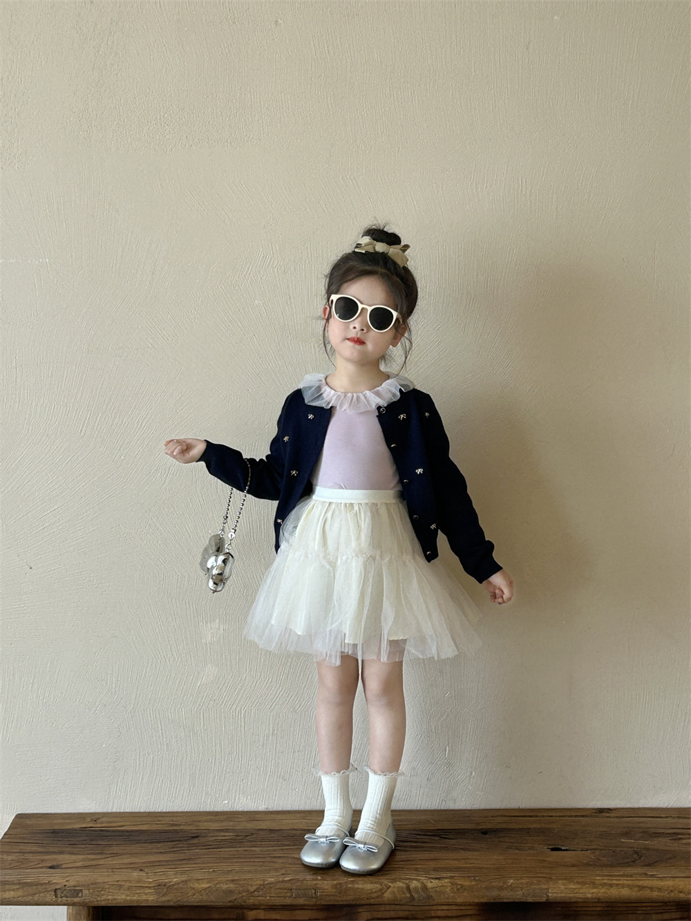 반품/교환 불가~ 여아용 봄 신상 리본 스웨터 가디건, 스팽글 메쉬 패치워크 티셔츠, 싱글 라인 메쉬 스커트스토어 가기