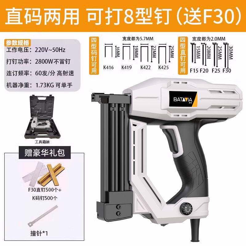 • [스트레이트/코드 겸용 조절 가능] 무료 F30 스트레이트 네일 K19 도어 네일 각 500개 + 발사 핀(공구 상자에 포장)