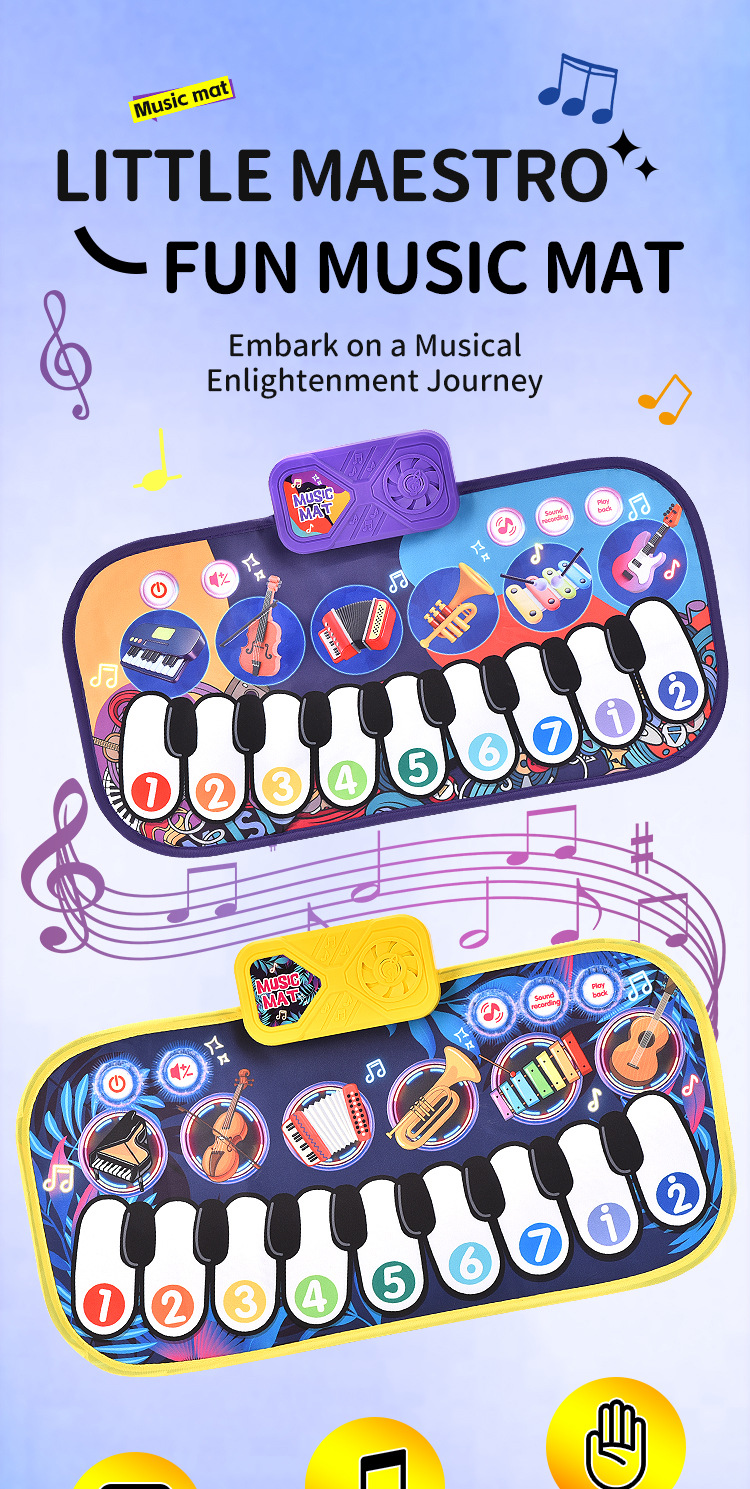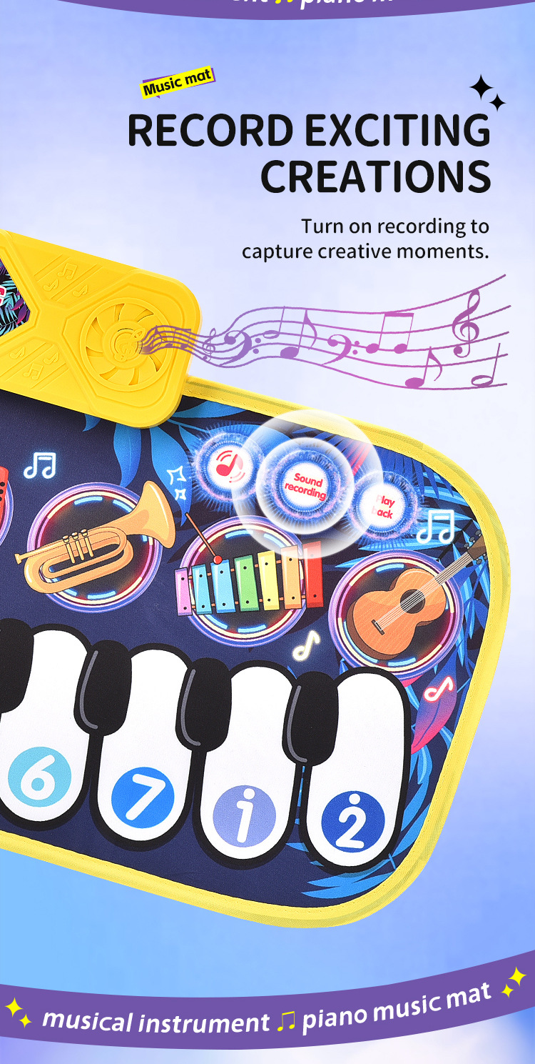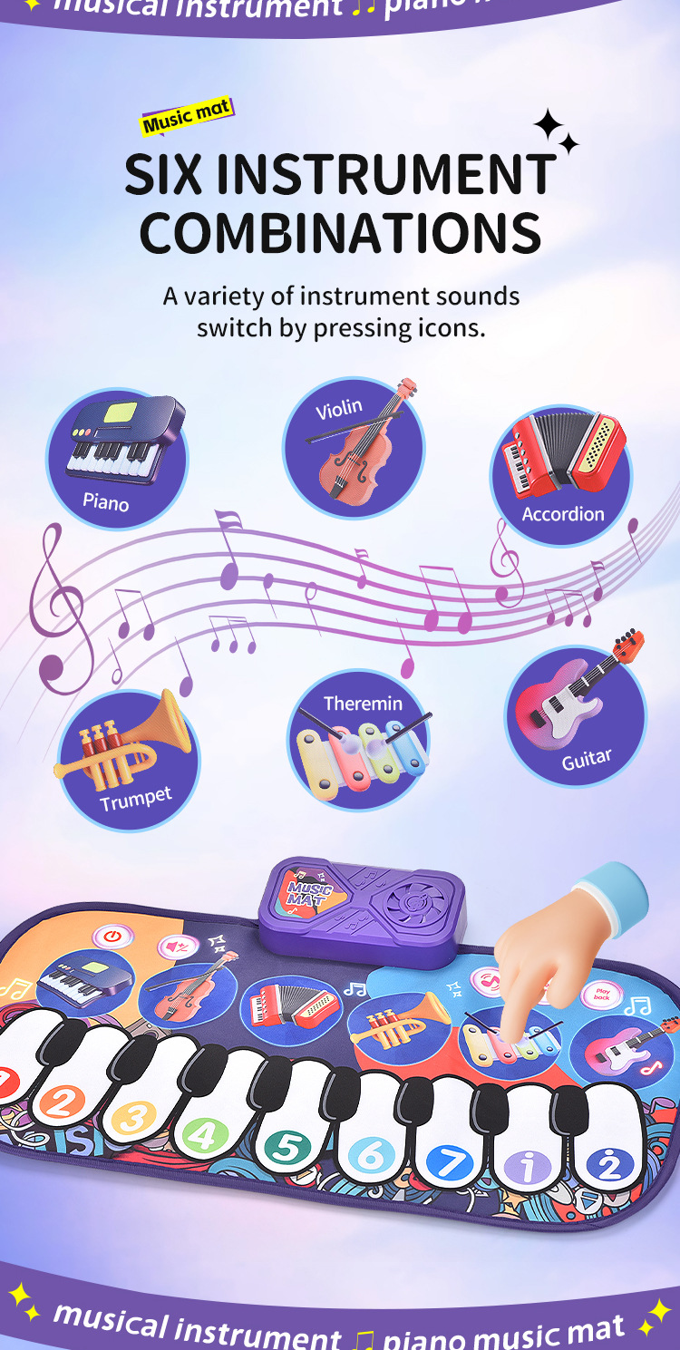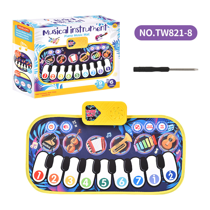 국경을 넘는 새로운 어린이용 6종 악기 소형 풋페일 피아노 디지털 크롤링 댄스 매트 사운드 및 라이트 인터랙티브 장난감