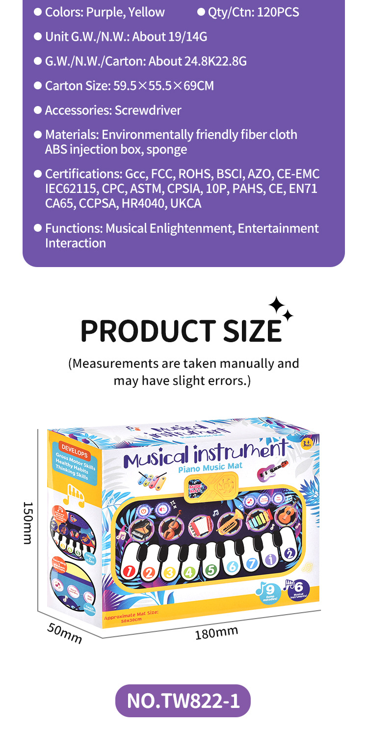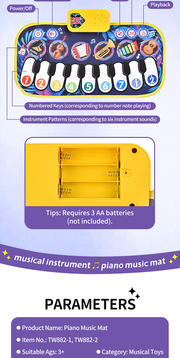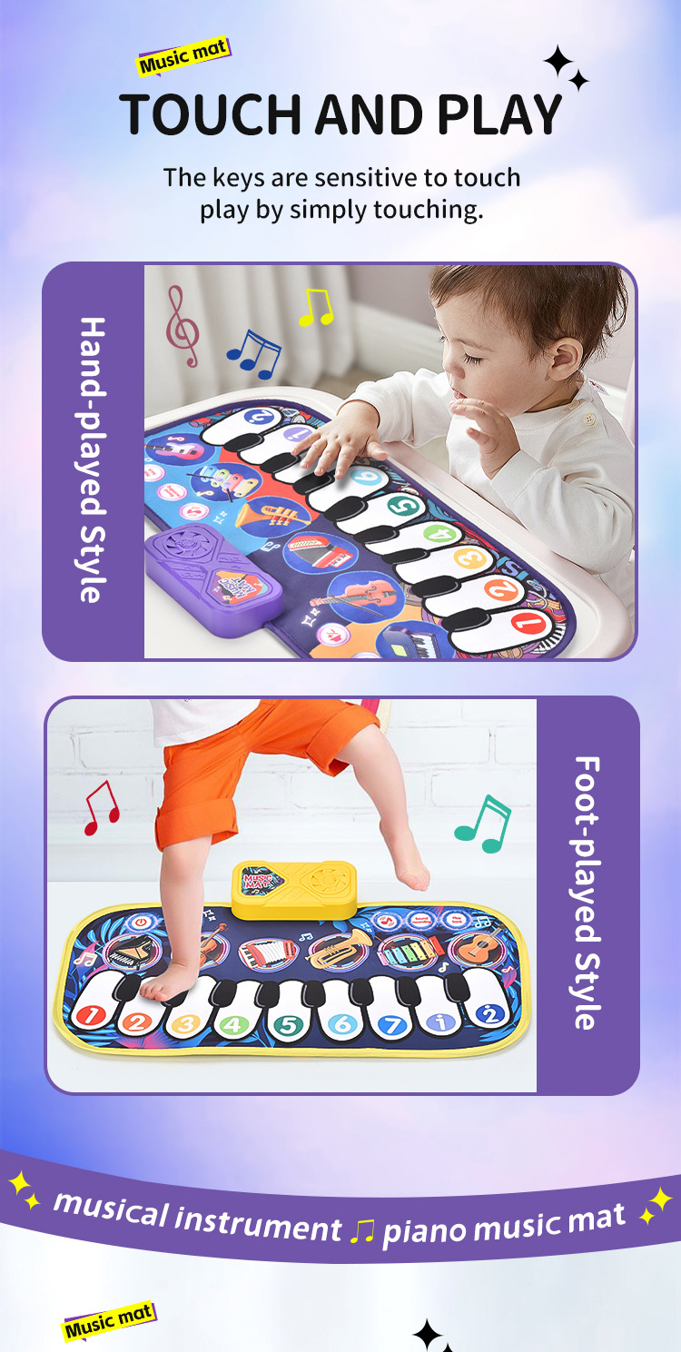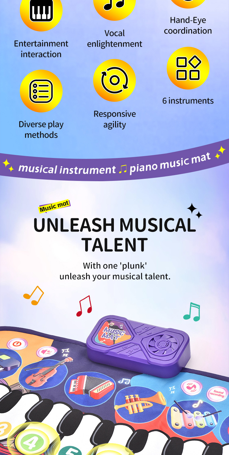 국경을 넘는 새로운 어린이용 6종 악기 소형 풋페일 피아노 디지털 크롤링 댄스 매트 사운드 및 라이트 인터랙티브 장난감