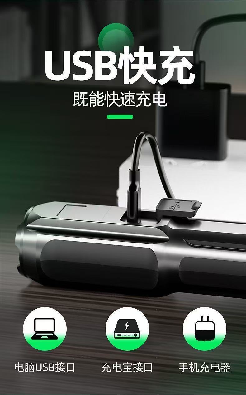 휴대용 망원경 줌 원격 손전등 USB 충전식 LED 손전등 캠핑 순찰 강력한 조명 홈 조명
