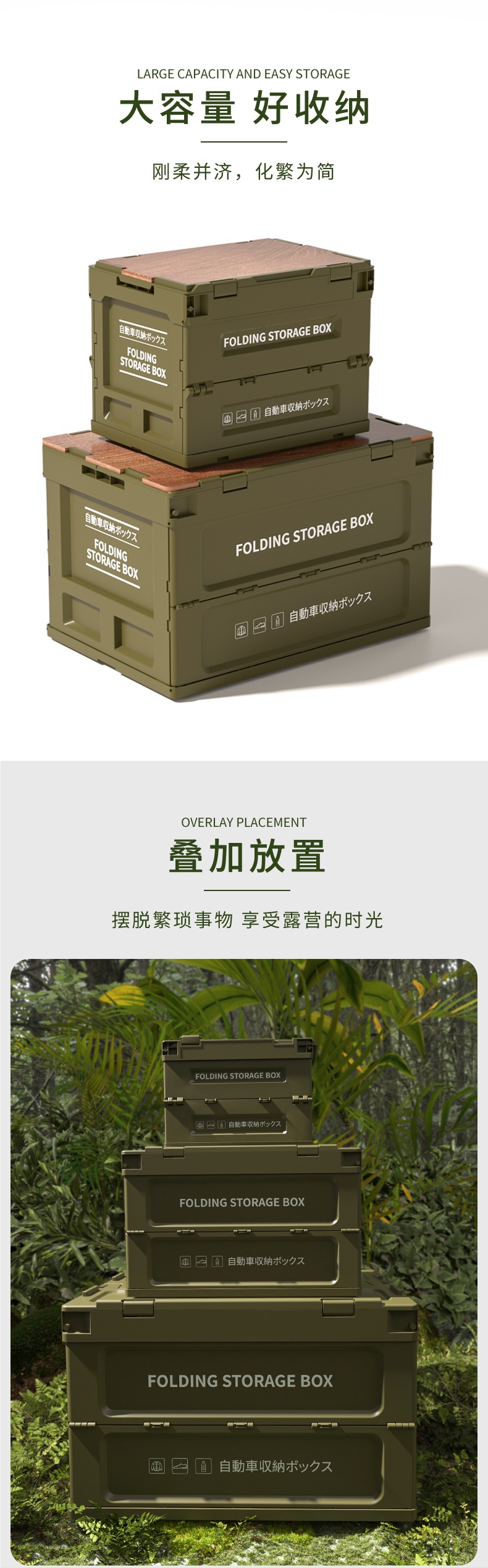 야외 캠핑 저장 상자 나무 덮개 판자 접는 상자 캠핑 저장 상자 자동차 트렁크 대용량 저장 상자