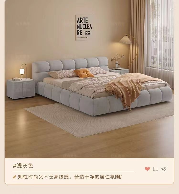 북유럽 스타일의 퍼프 침대 기술 원단 침대 마스터 침실 더블 침대 간단한 현대 크림 양털 빛 고급 사일런트 스타일 침대스토어 가기