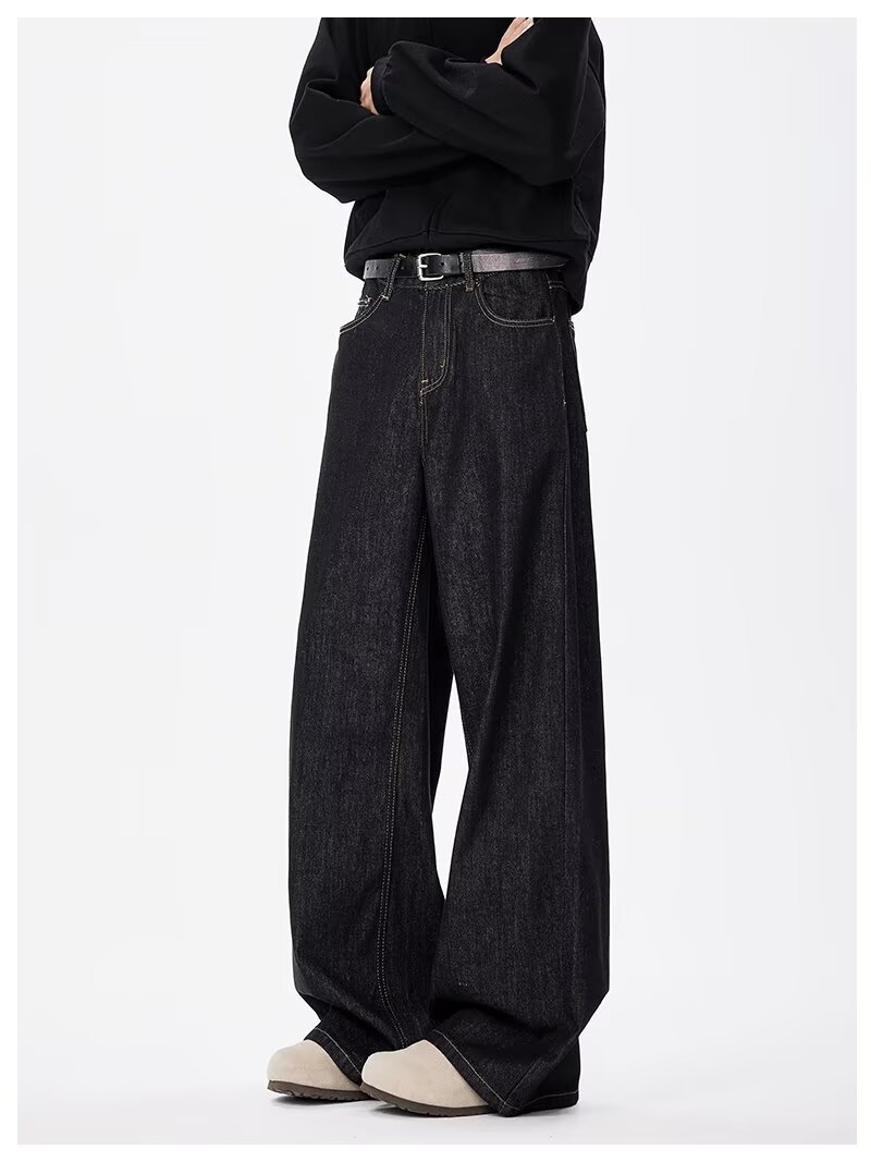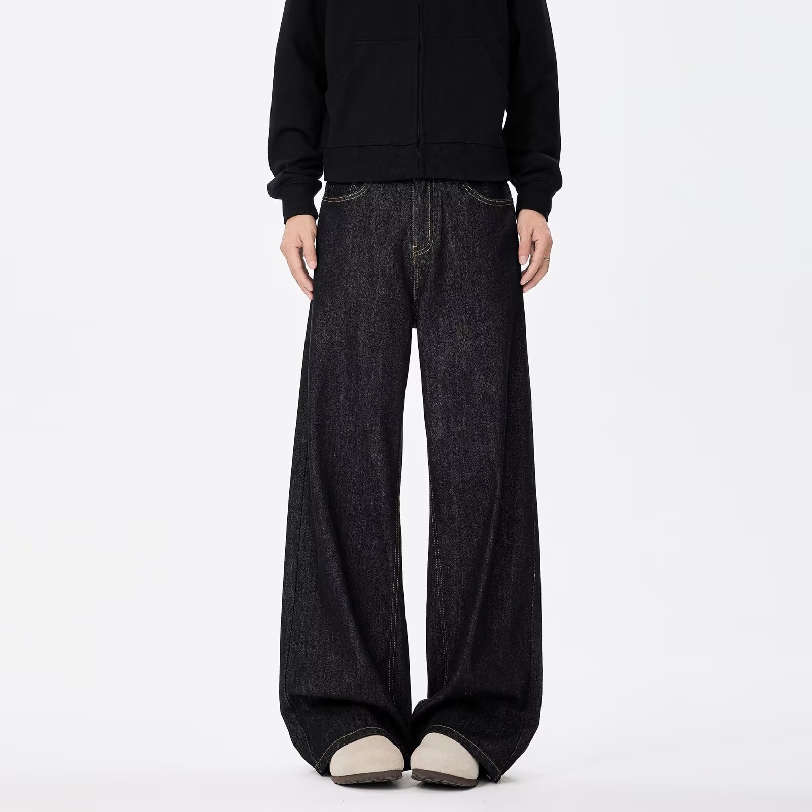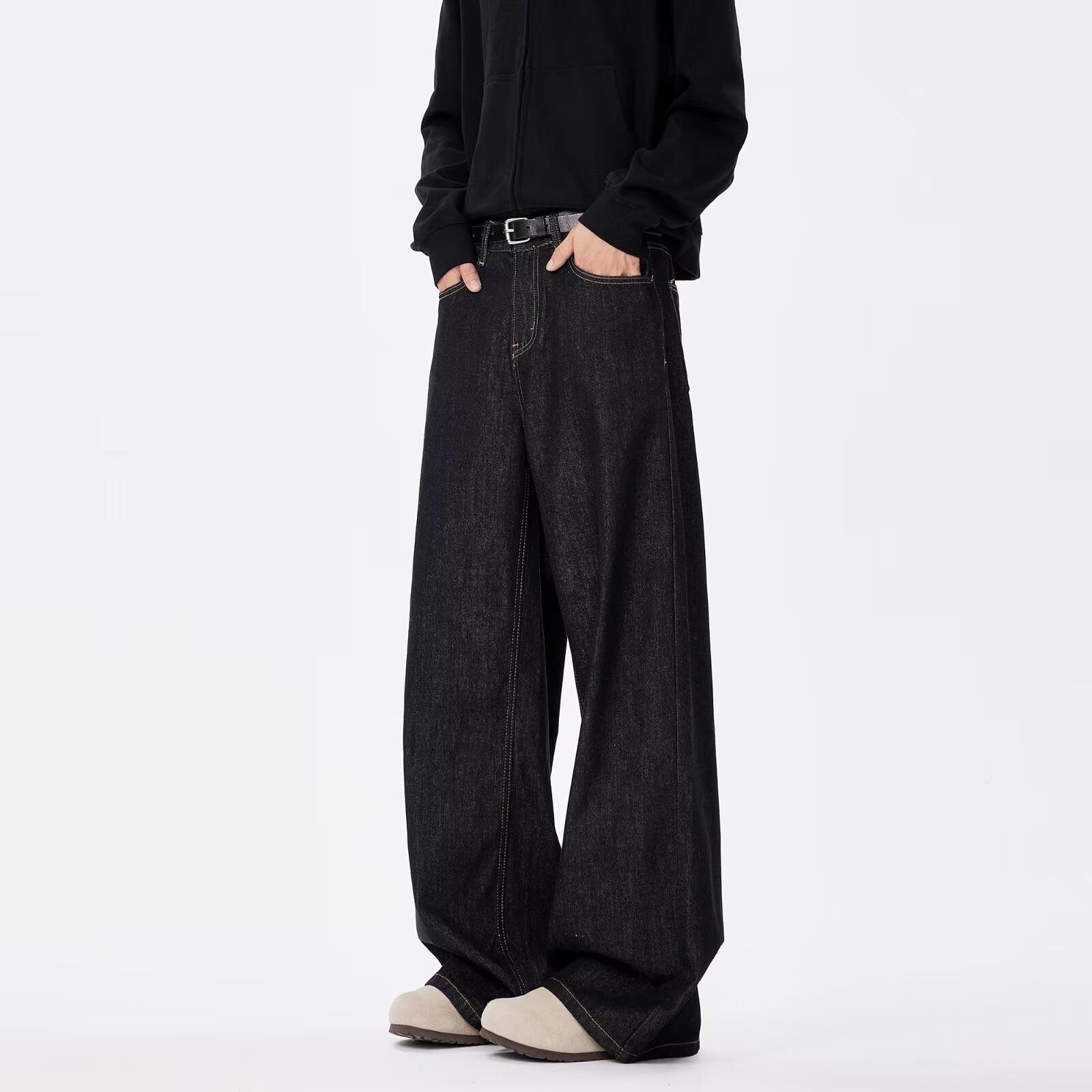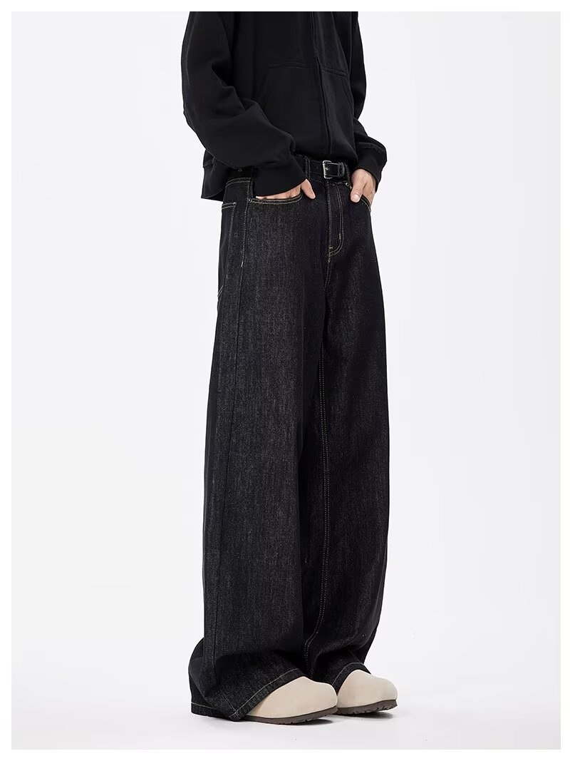 아메리칸 스타일 레트로 클렌핏 와이드 레그 청바지 남성 및 여성 패션 브랜드 새로운 루즈 딥 스트레이트 캐주얼 롱 팬츠