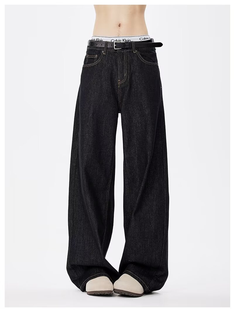 아메리칸 스타일 레트로 클렌핏 와이드 레그 청바지 남성 및 여성 패션 브랜드 새로운 루즈 딥 스트레이트 캐주얼 롱 팬츠스토어 가기