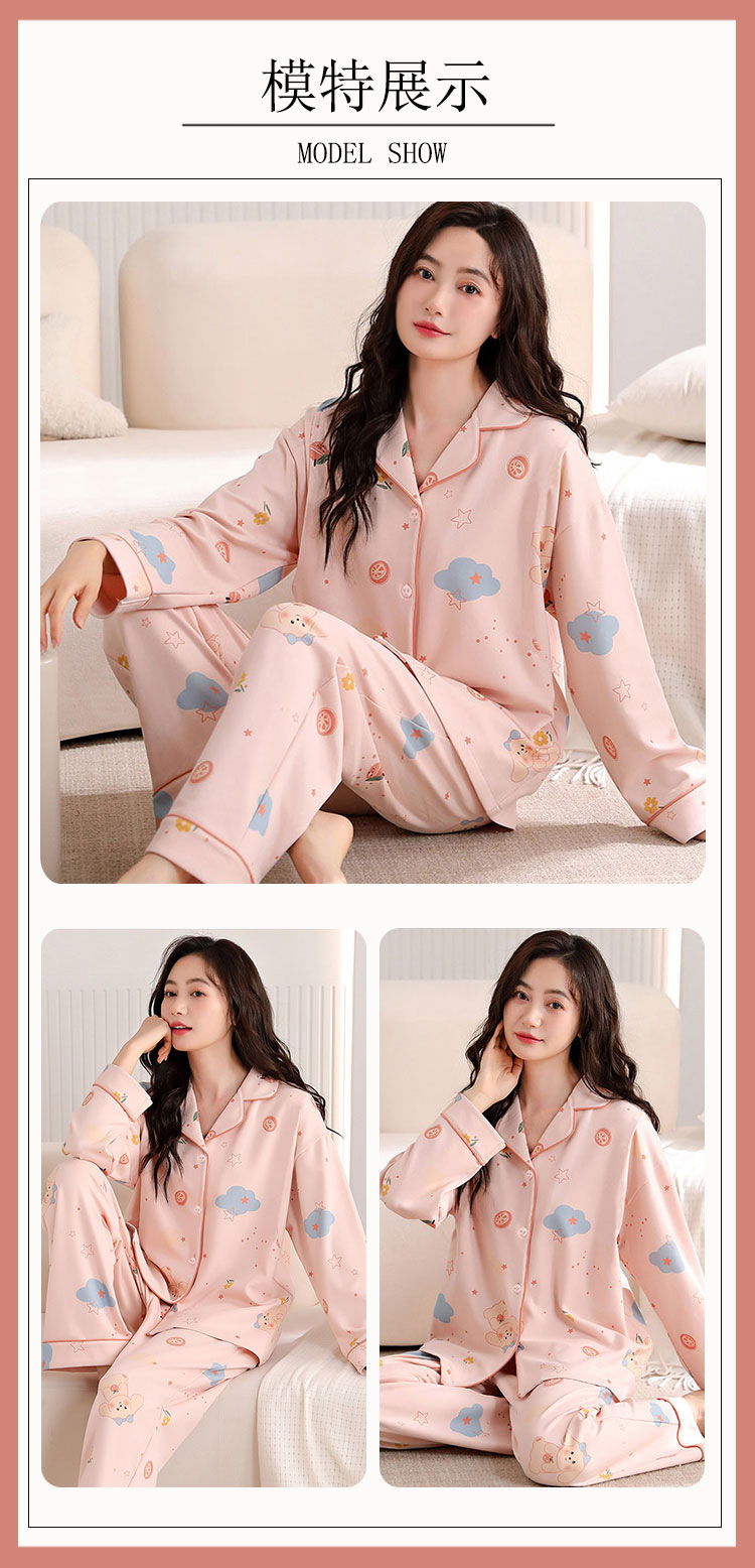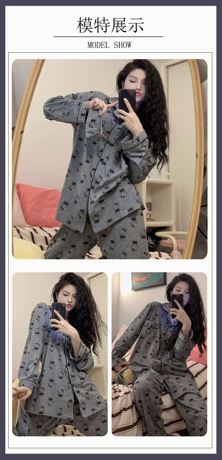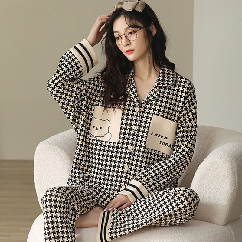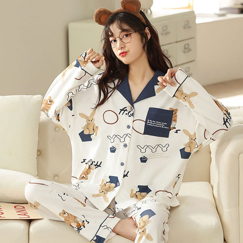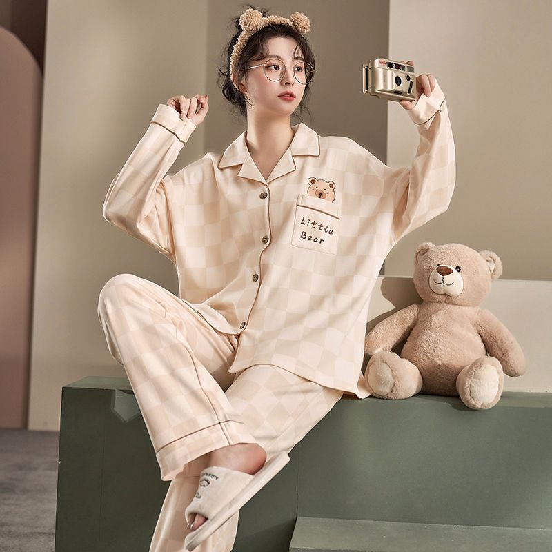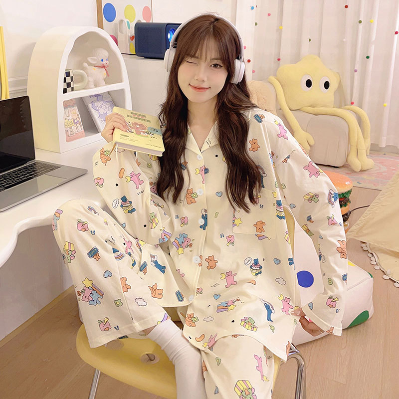 귀여운 코튼 파자마 여성의 봄과 가을 2025 새로운 크림 베어 긴 소매 바지 봄과 가을과 겨울 플러스 사이즈 홈 의류 세트스토어 가기