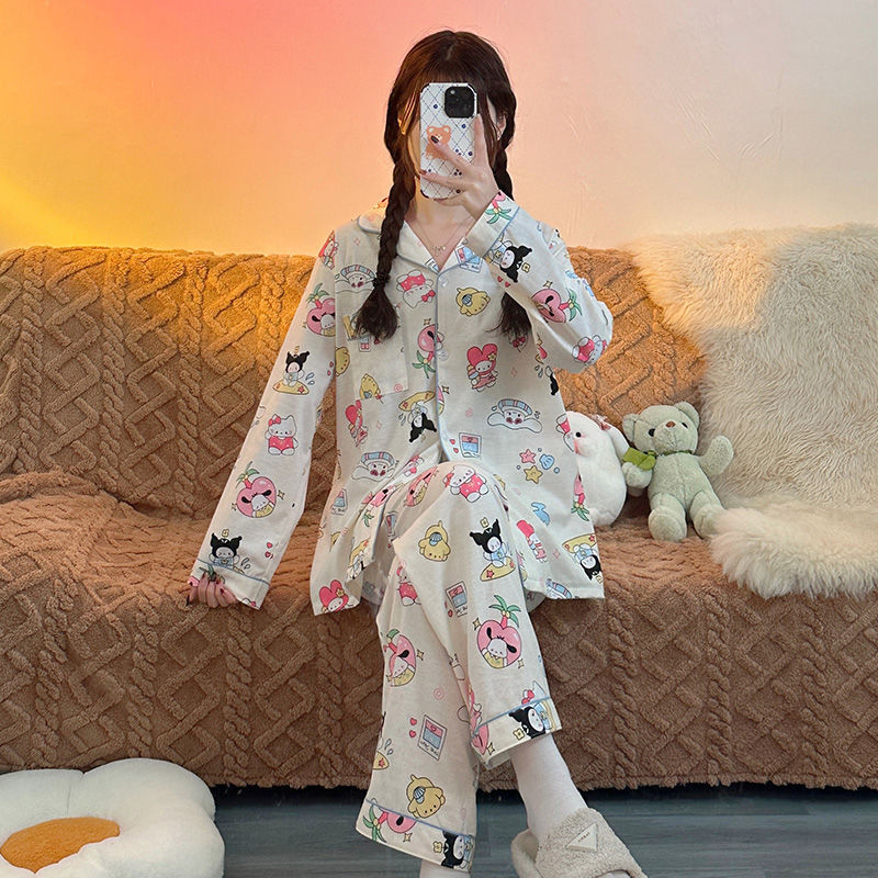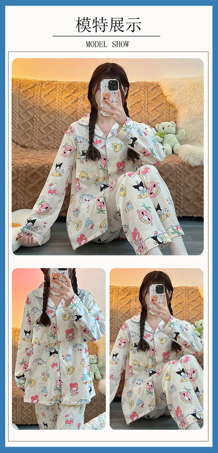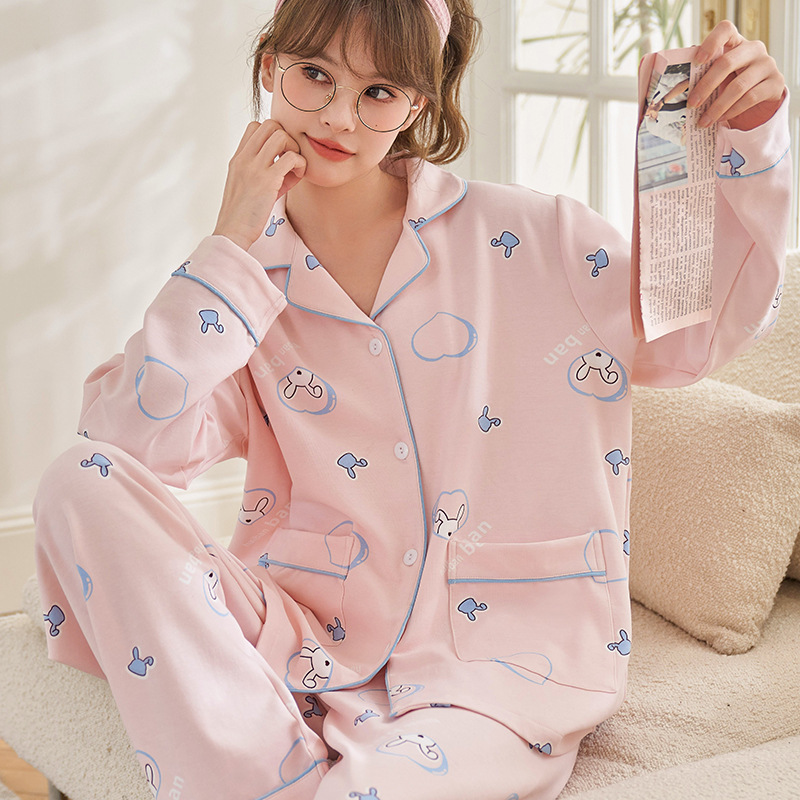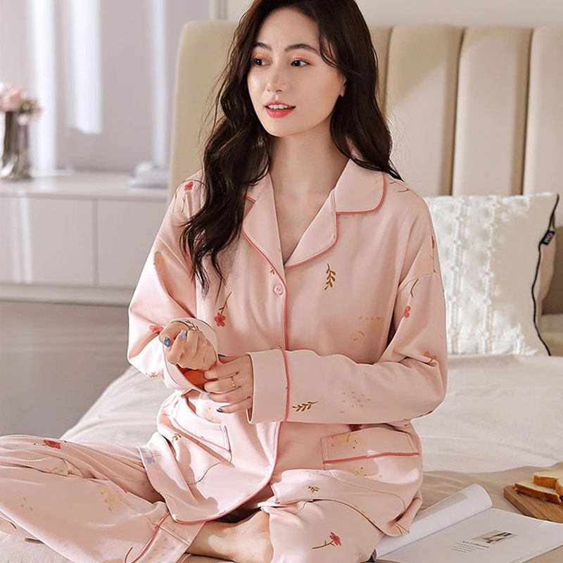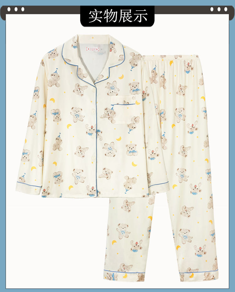 귀여운 코튼 파자마 여성의 봄과 가을 2025 새로운 크림 베어 긴 소매 바지 봄과 가을과 겨울 플러스 사이즈 홈 의류 세트스토어 가기