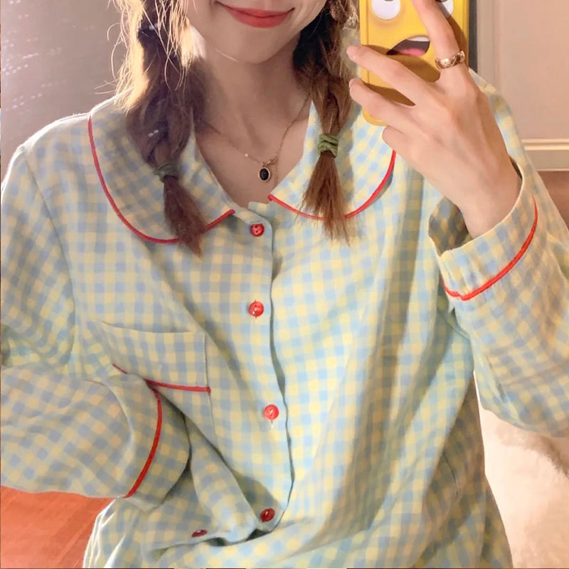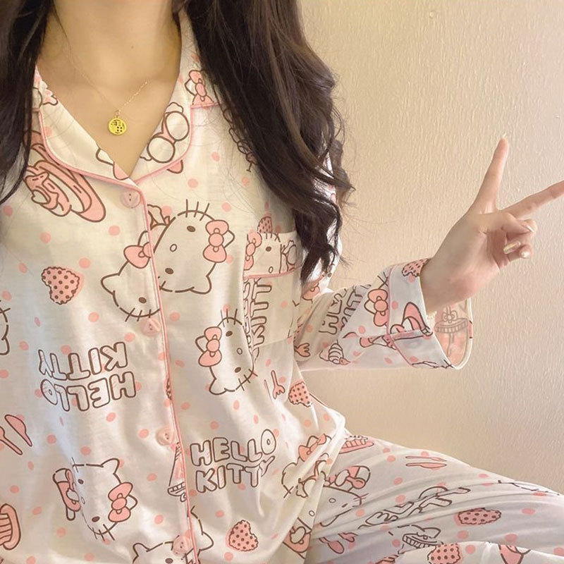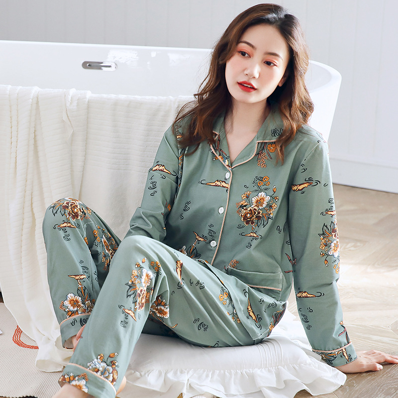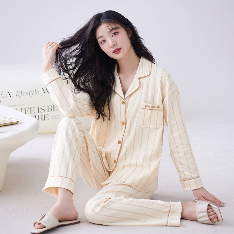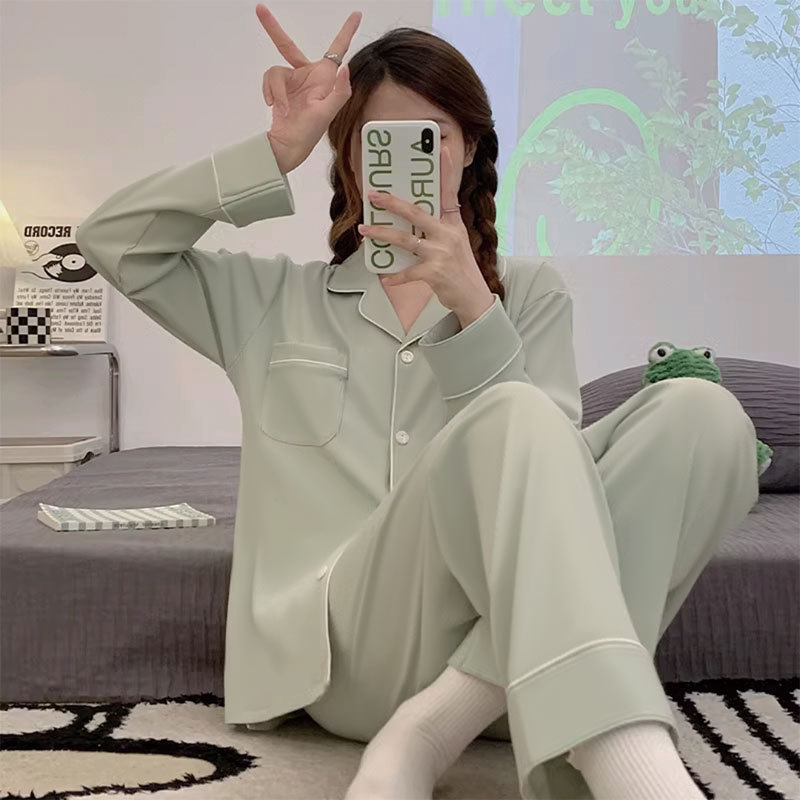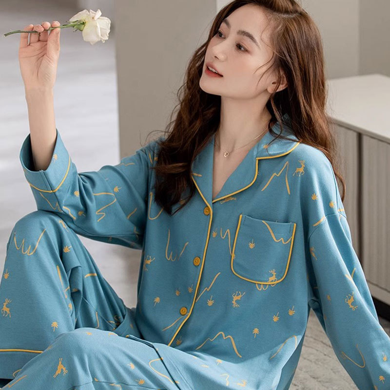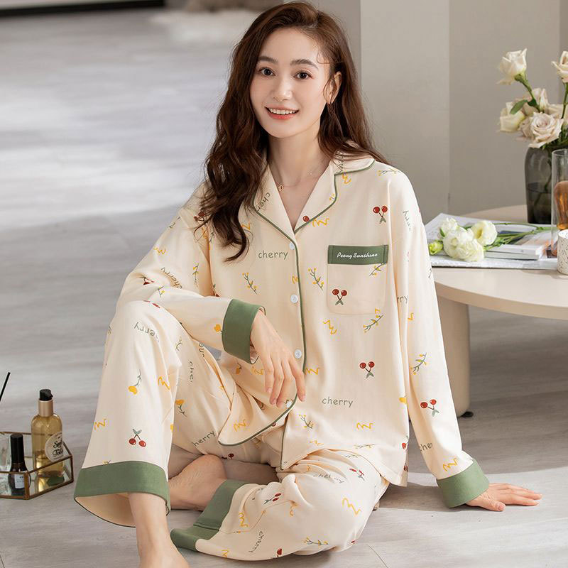 귀여운 코튼 파자마 여성의 봄과 가을 2025 새로운 크림 베어 긴 소매 바지 봄과 가을과 겨울 플러스 사이즈 홈 의류 세트스토어 가기