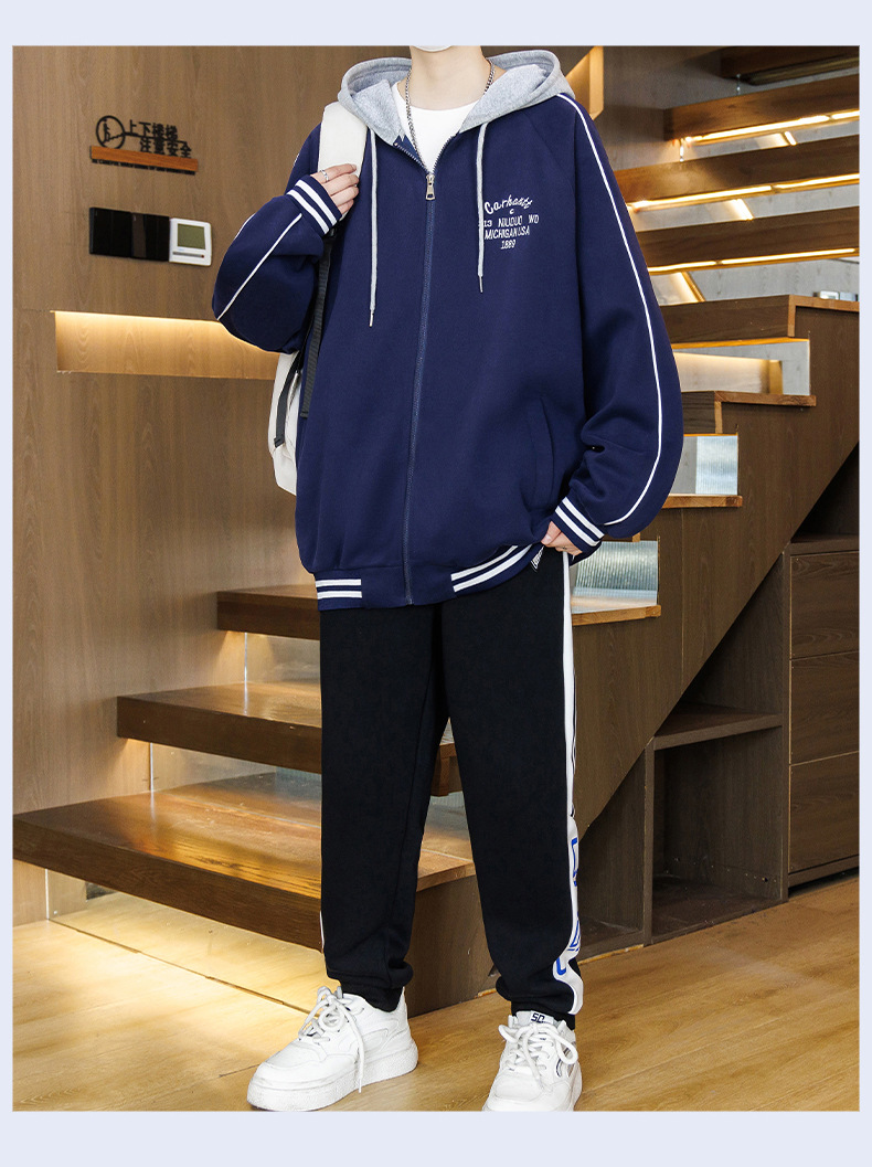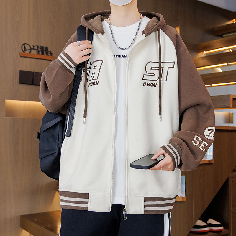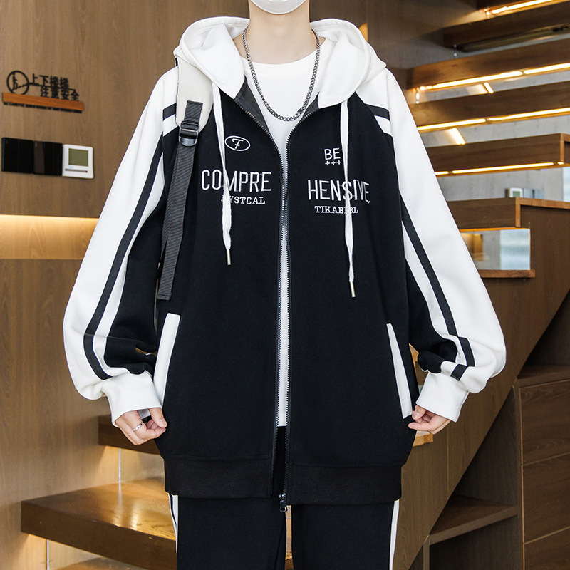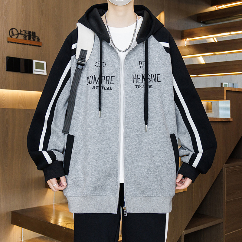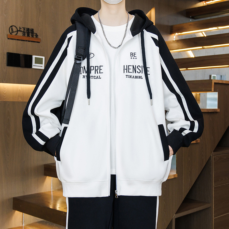 후드 알파벳 카디건 스웨터 최고 남성 잘 생긴 남자 가을 봄 느슨한 유행 인쇄 유행 브랜드 탑