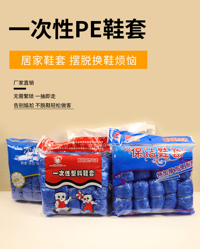 공장 도매 신발 커버 두꺼운 실내 방수 내마모성 미끄럼 방지 컴퓨터 룸 학생 성인 환대 플라스틱 커버 pe 신발 커버