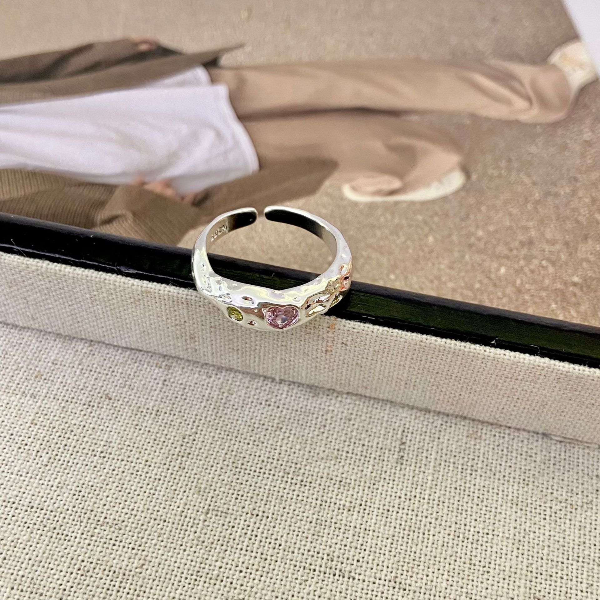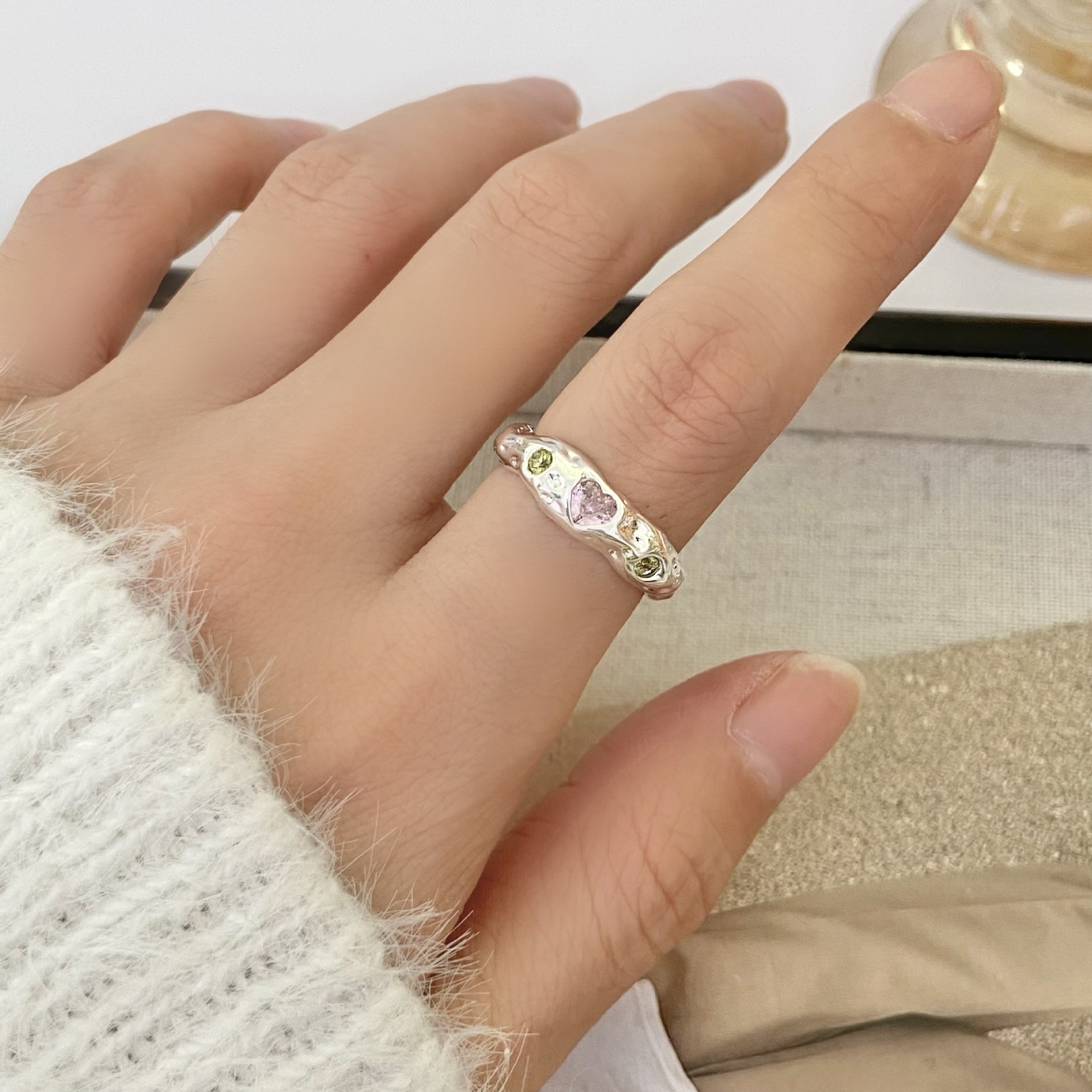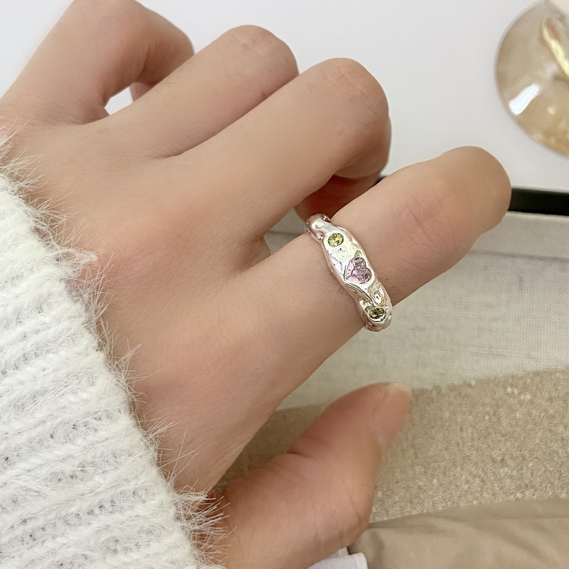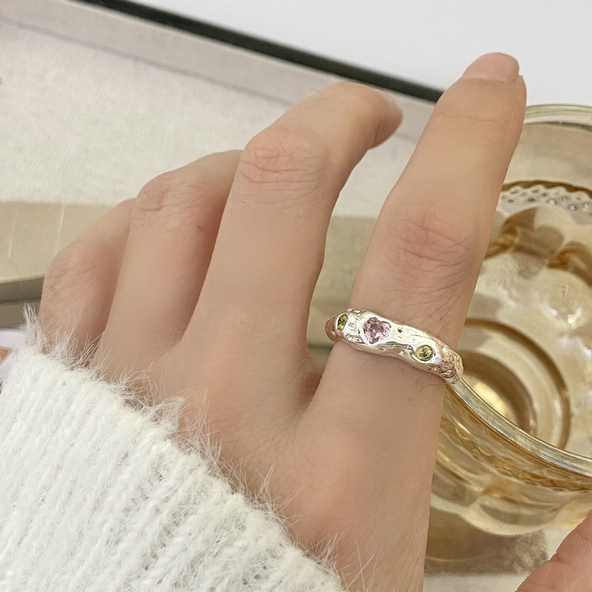 불규칙한 사랑 핑크 다이아몬드 오프닝 링 달콤한 멋진 틈새 스타일 소녀의 심장 높은 아름다움 가치 유행 맞춤형 반지스토어 가기