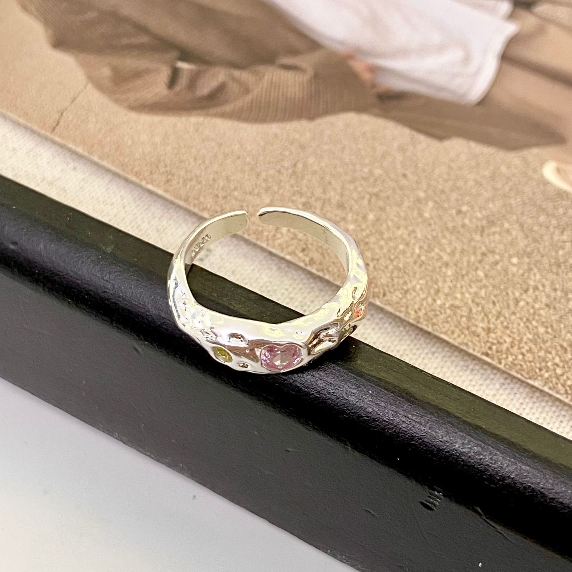 불규칙한 사랑 핑크 다이아몬드 오프닝 링 달콤한 멋진 틈새 스타일 소녀의 심장 높은 아름다움 가치 유행 맞춤형 반지