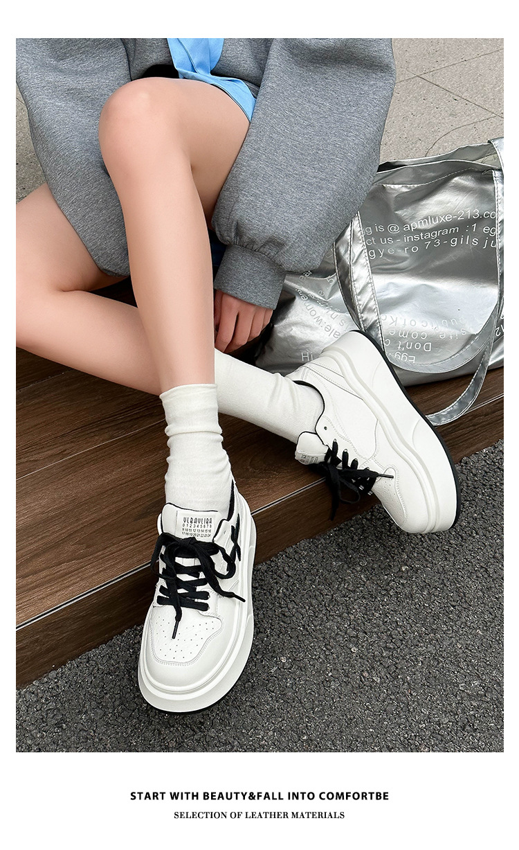 여성을 위한 두꺼운 밑창 흰색 신발 2025 봄과 가을 새로운 패션 작은 고조 다재다능한 패션 스포츠 및 레저 스니커즈스토어 가기