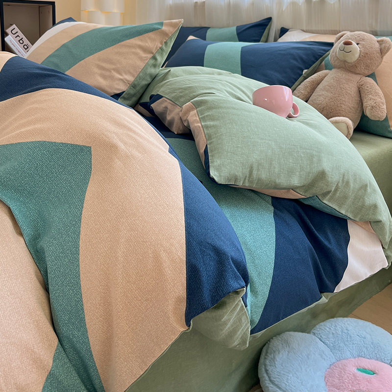 간단한 코튼 침대 4 피스 세트 코튼 2024 기숙사 소년 퀼트 커버 침대 시트 3 피스 세트를위한 새로운 스타일의 노르딕 침구스토어 가기