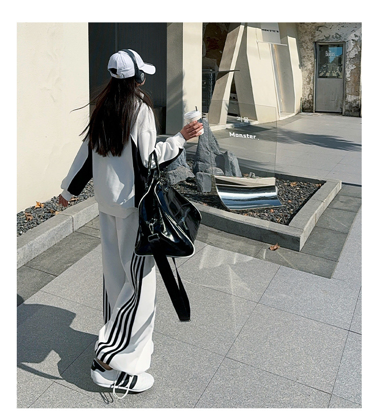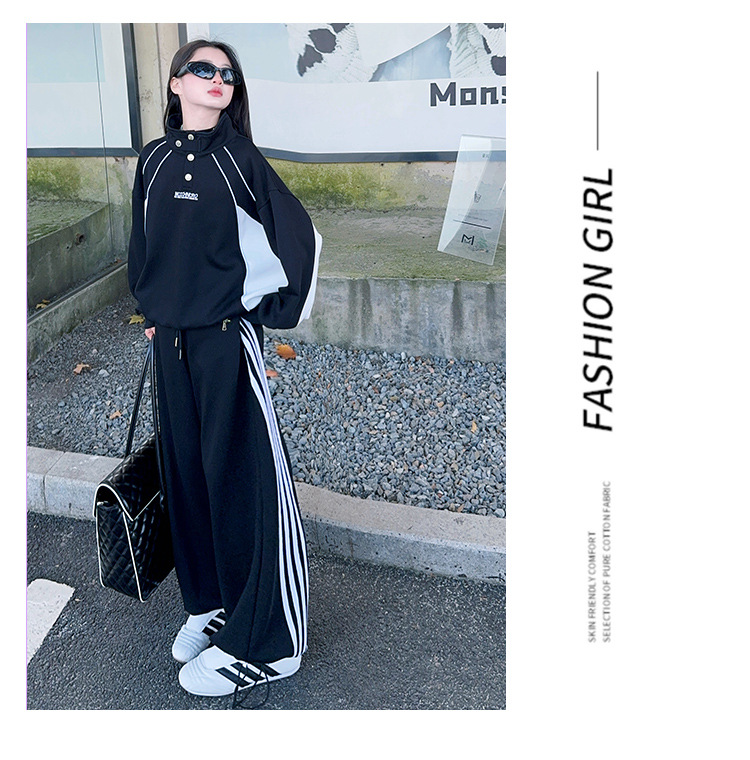 소녀 게으른 스타일 니트 세트 2025 봄과 가을 새로운 중대형 어린이 패션 힙합 스트리트 댄스 공연 의류 투피스 세트스토어 가기