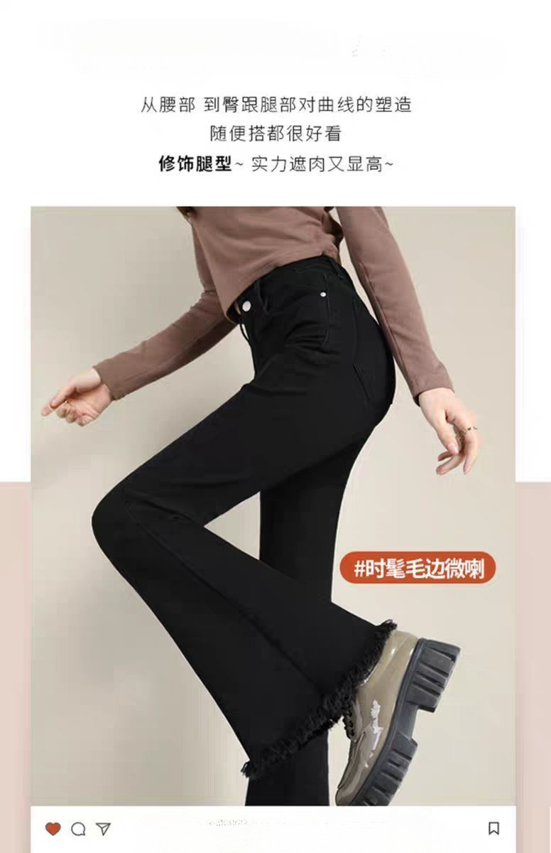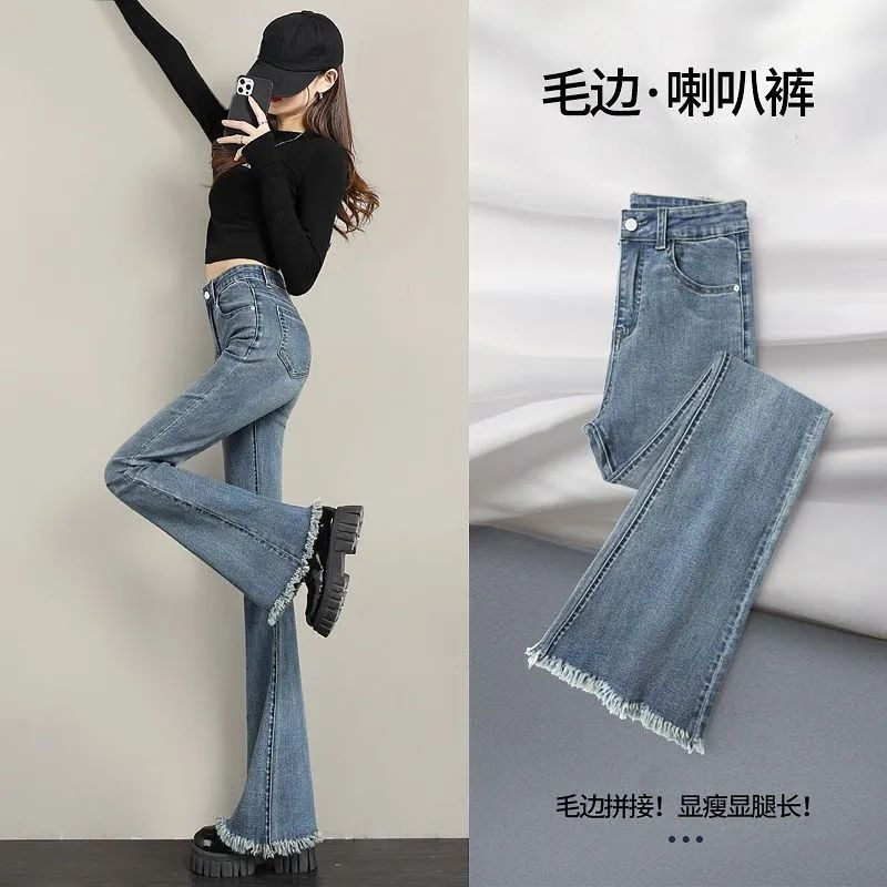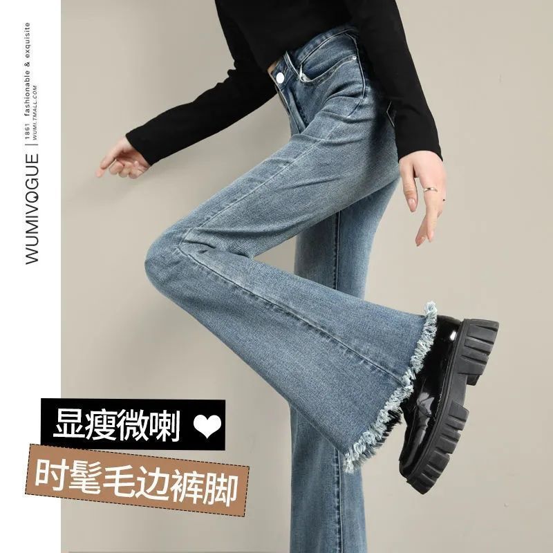 새로운 여성 높은 허리 슬리밍 바지 바지 하이 스트리트 레트로 트렌디 패션 모직 청바지
