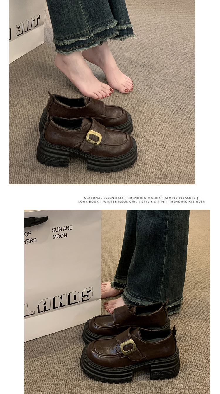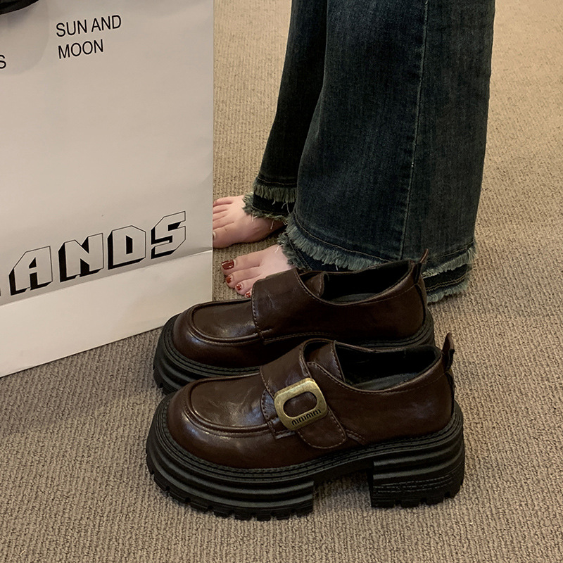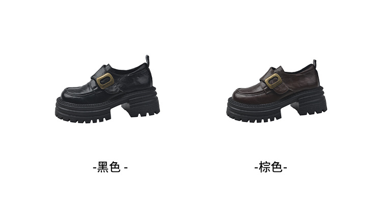 두꺼운 싱글 두꺼운 힐 영국 스타일 작은 가죽 신발 여성의 2024 새로운 도착 가을 및 겨울 올 매치 높이 증가 여성 신발 싱글 레이어 신발 블랙 로퍼스토어 가기