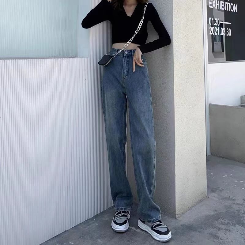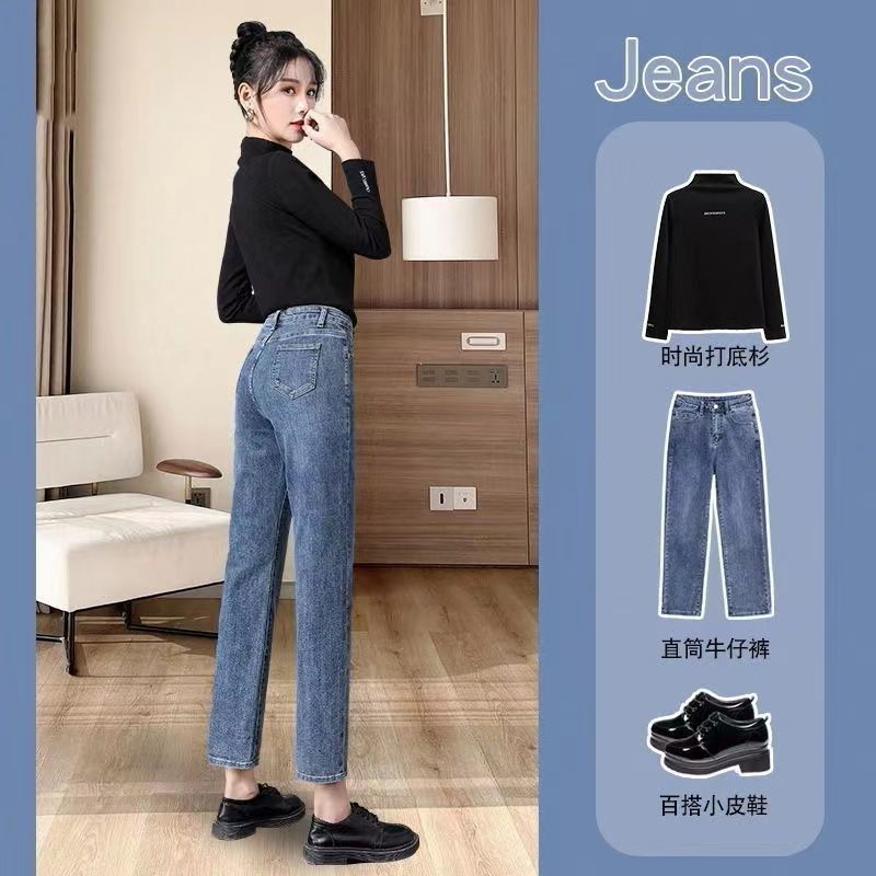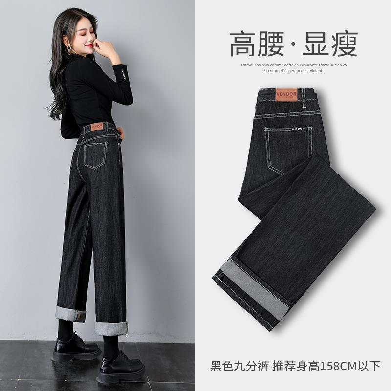 스트레이트 레그 기모 청바지 여성용 스트레치 와이드 레그 팬츠 하이 룩 루즈 올매치 트렌디 트렌디 트렌디 트렌디 타이트 룩 슬리밍 미터 감각스토어 가기