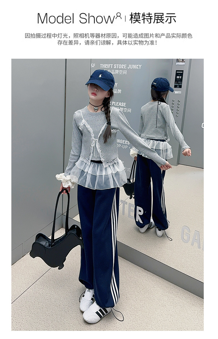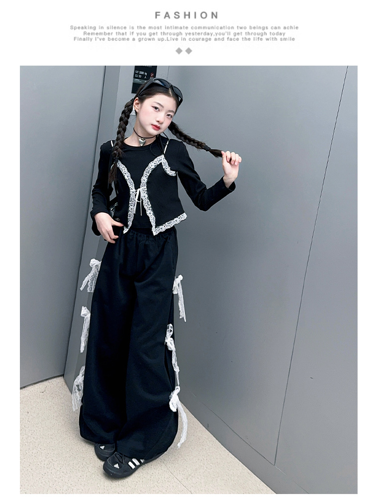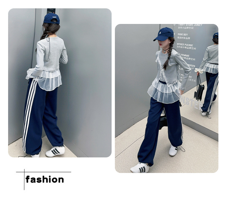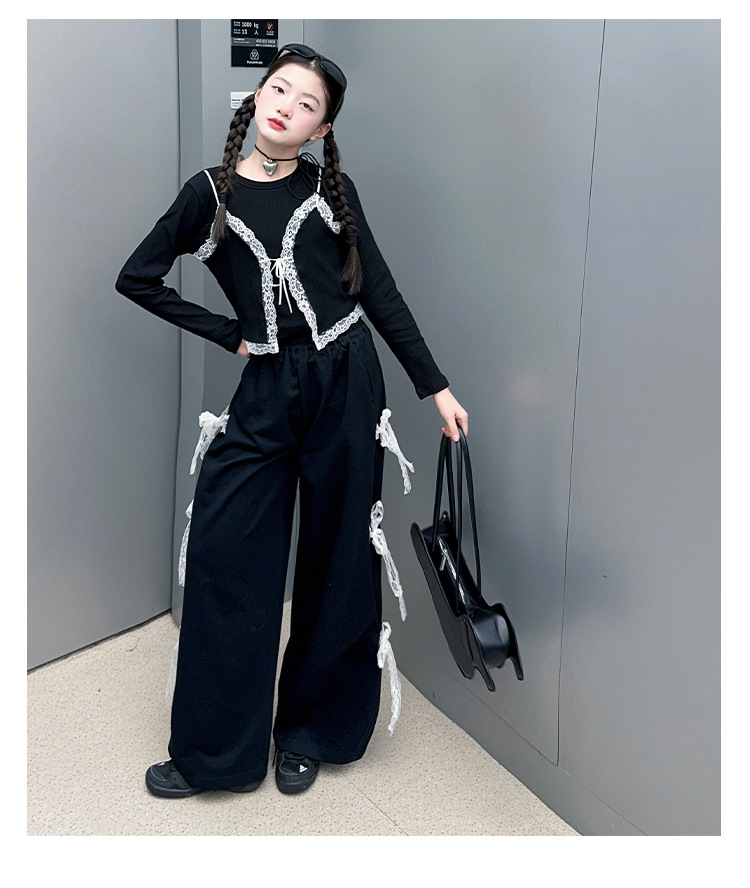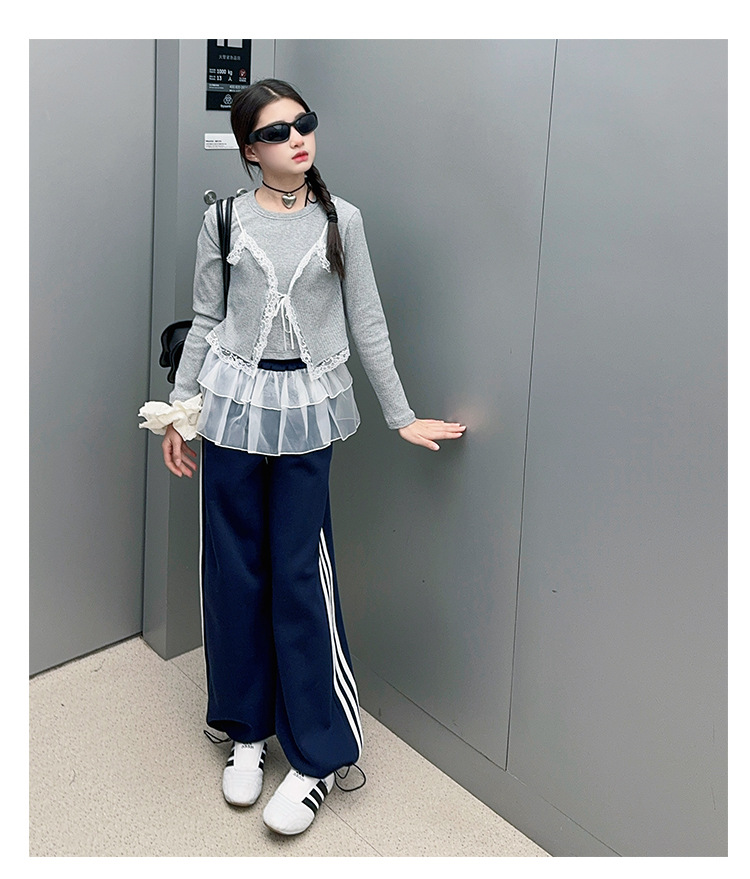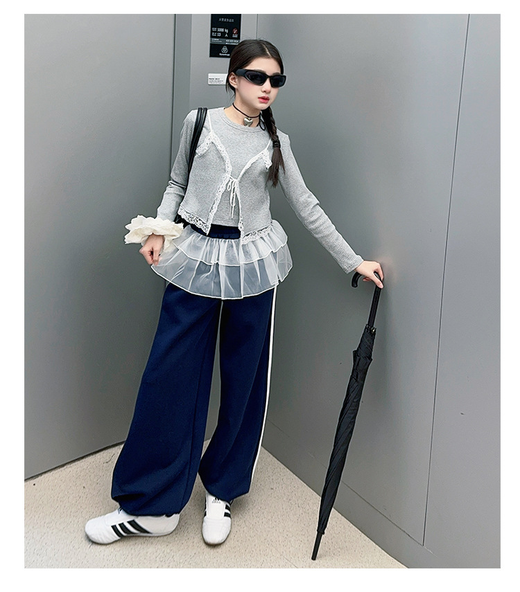 소녀 2025 봄과 가을 한국 스타일 레트로 서양식 작은 셔츠 바느질 레이스 가장자리 작은 슬링 티셔츠 가짜 투피스 탑 트렌디