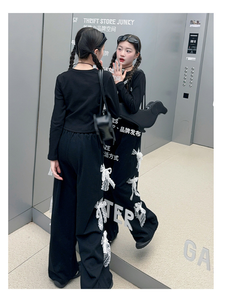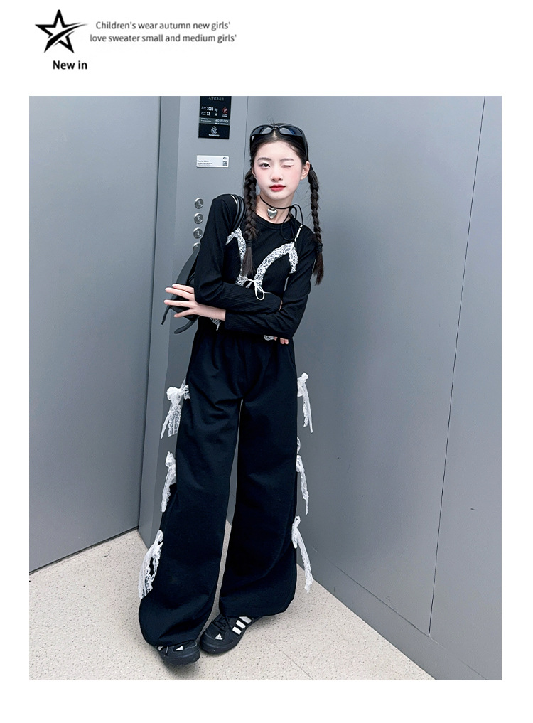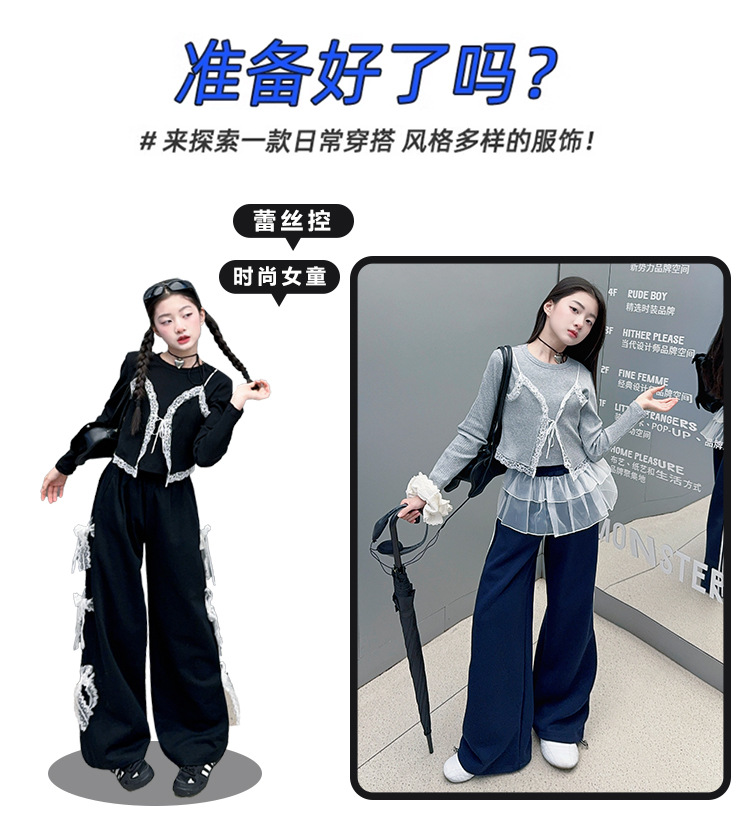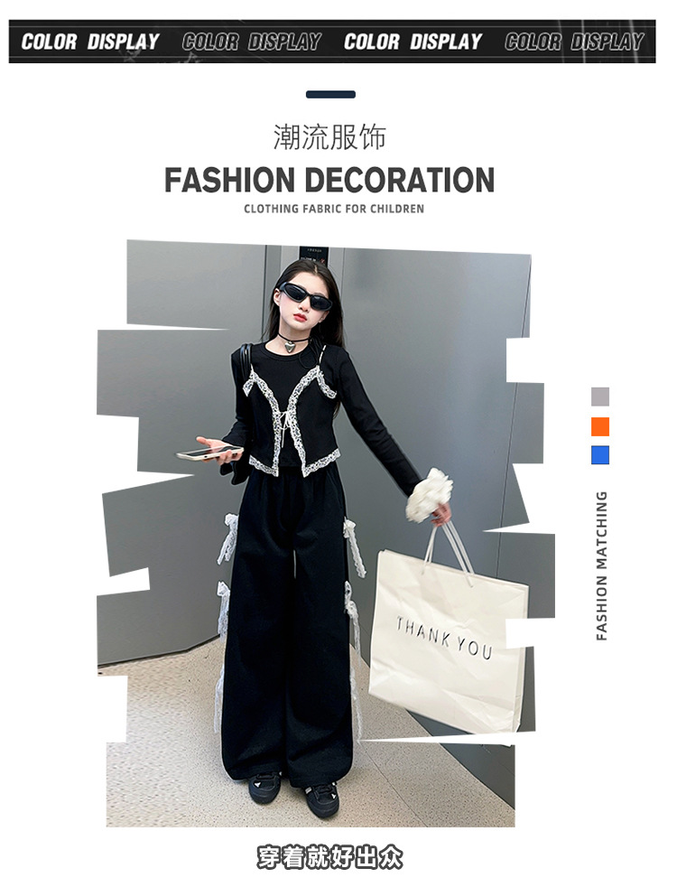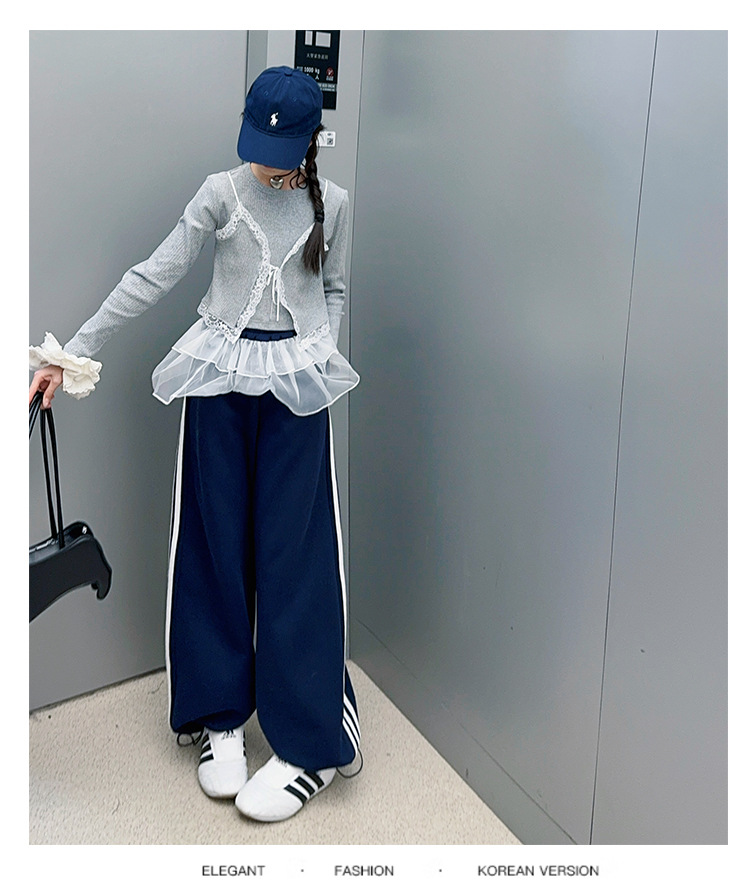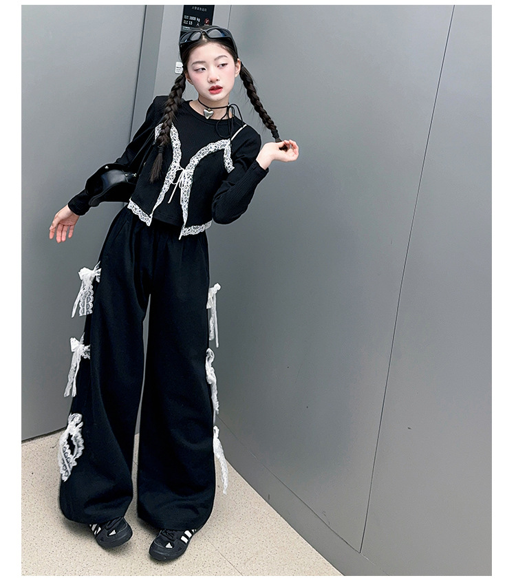 소녀 2025 봄과 가을 한국 스타일 레트로 서양식 작은 셔츠 바느질 레이스 가장자리 작은 슬링 티셔츠 가짜 투피스 탑 트렌디