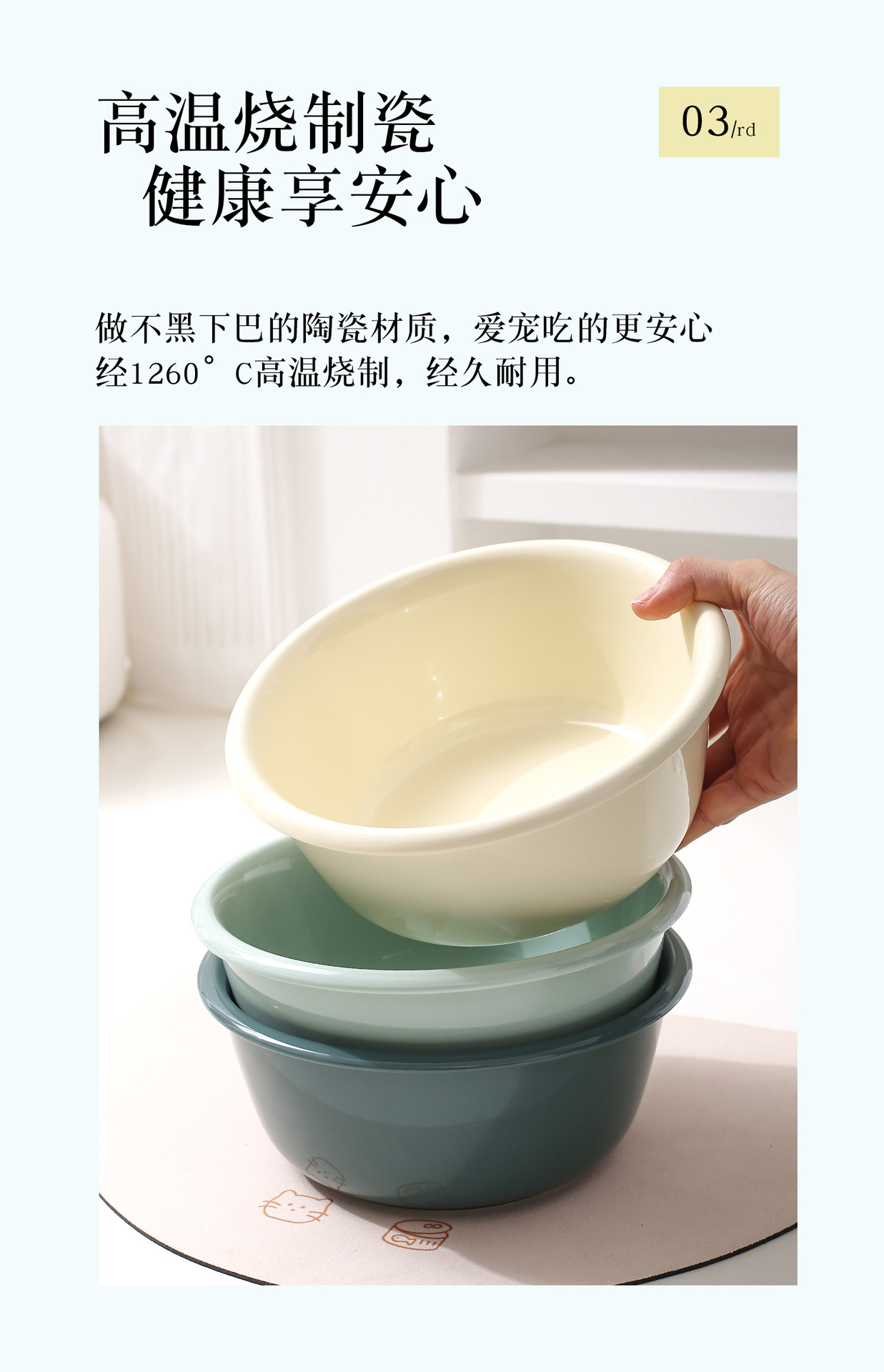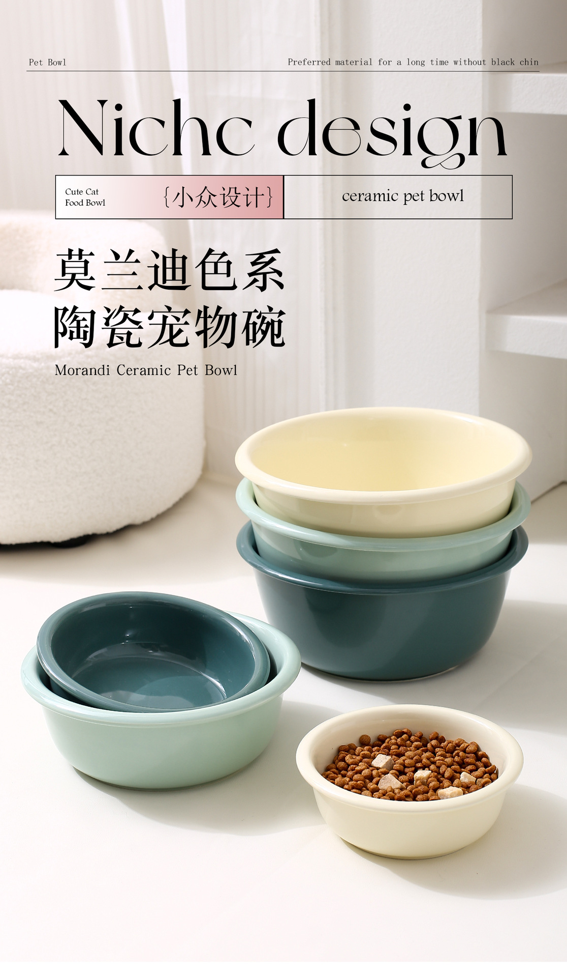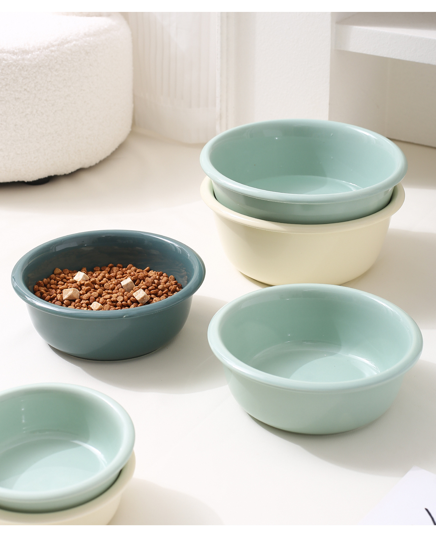 창조적 인 단색 카운터 입 그릇 가정용 애완 동물 그릇 세라믹 마시는 그릇 고양이 그릇 개 그릇 큰 용량 개 분지 안티 노크 그릇
