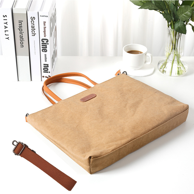 휴대용 어깨 크로스 바디 컴퓨터 가방 빨 크래프트 종이 파일 가방 노트북 가방