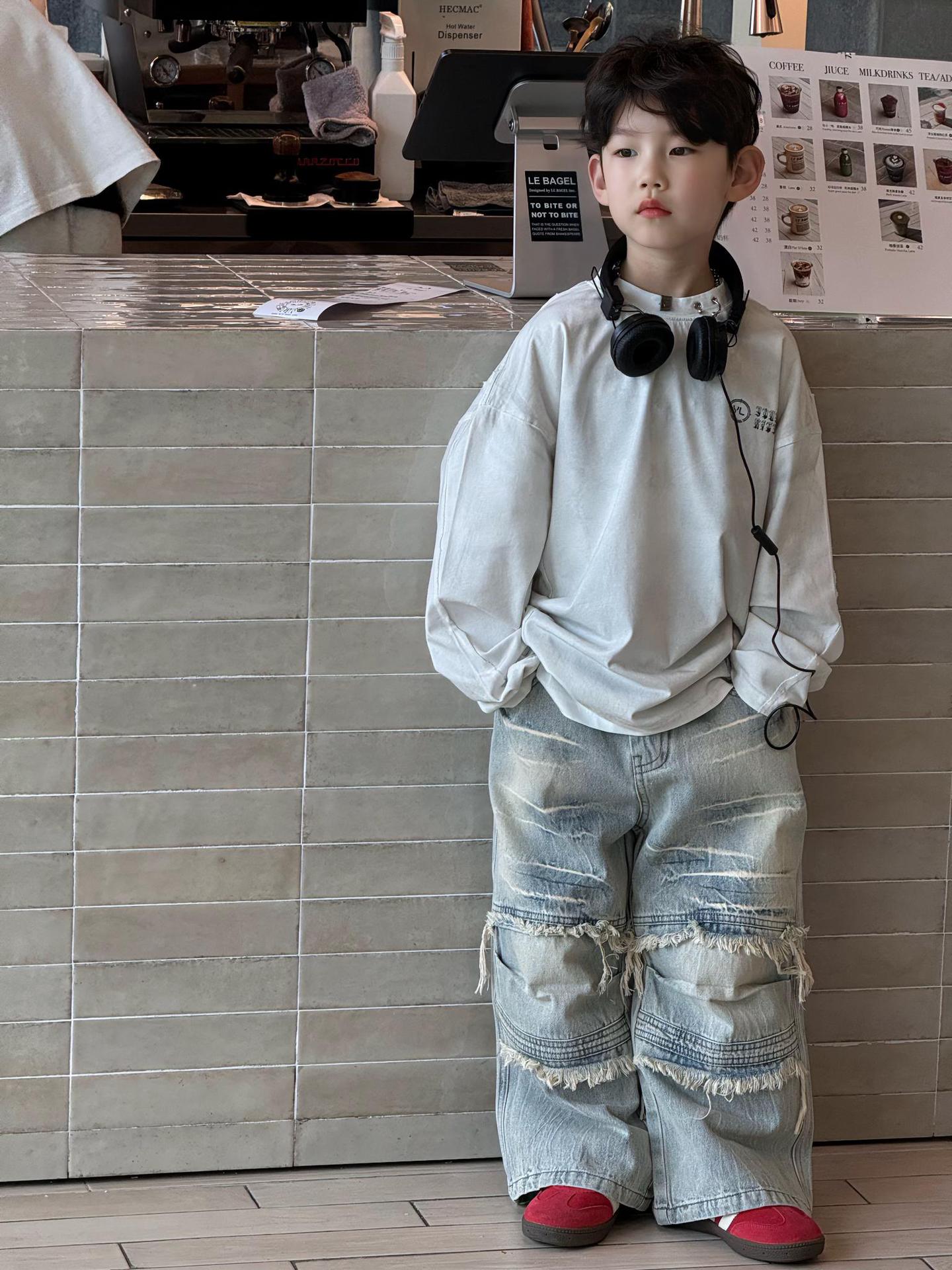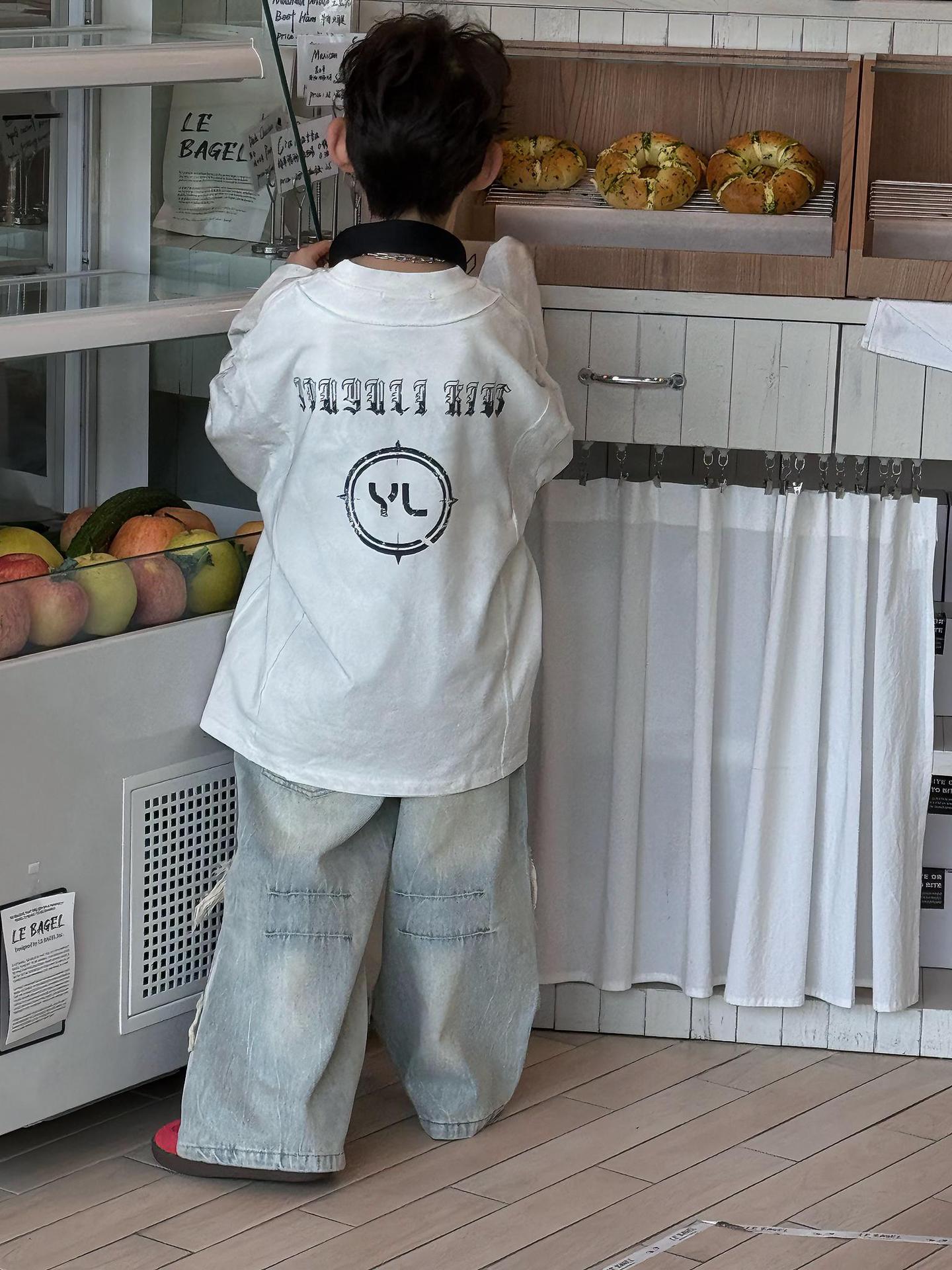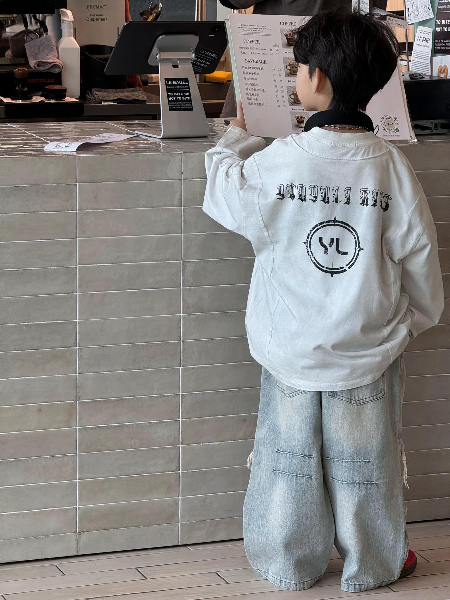 Tairu 봄 신작 한국 스타일 소년 긴팔 티셔츠 트렌디 힙합 올 매치 스트리트 바닥 아동용 탑스토어 가기