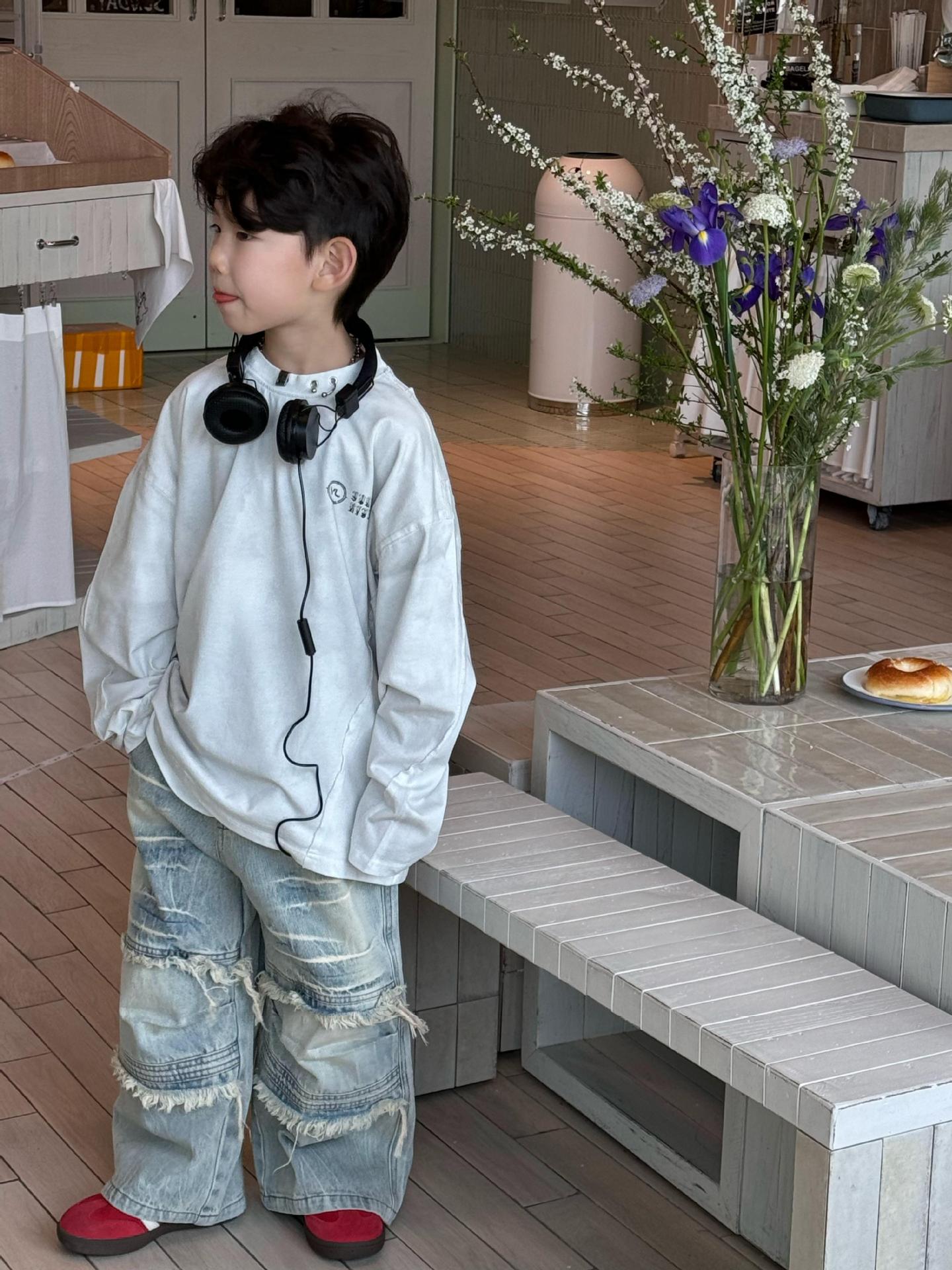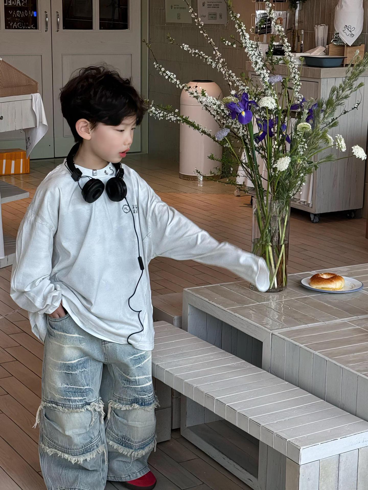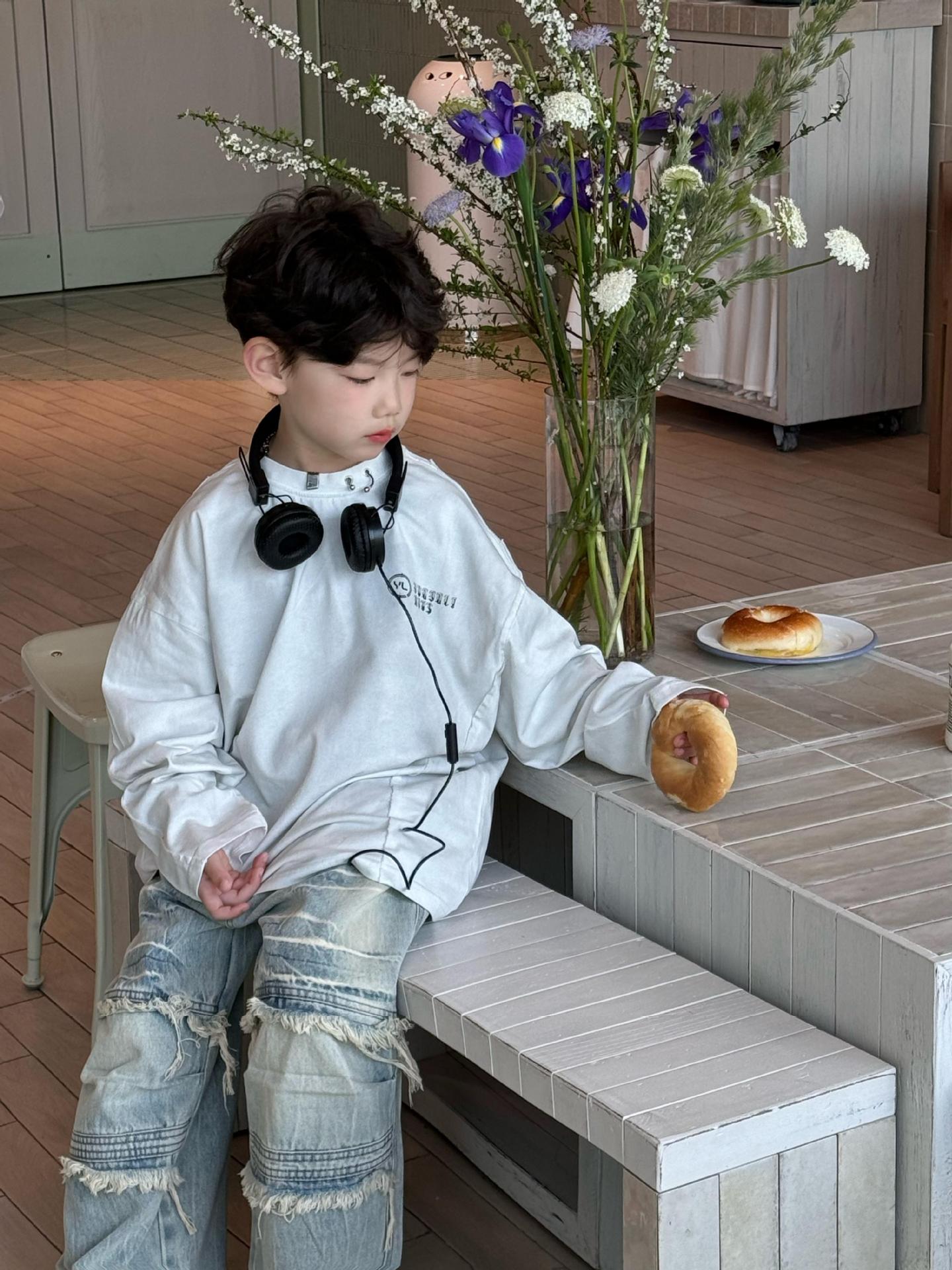 Tairu 봄 신작 한국 스타일 소년 긴팔 티셔츠 트렌디 힙합 올 매치 스트리트 바닥 아동용 탑스토어 가기