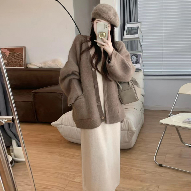 플러스 사이즈 여성 통통녀 가을과 겨울 부드러운 게으른 바람 니트 카디건 코트 원피스 200kg 세트스토어 가기