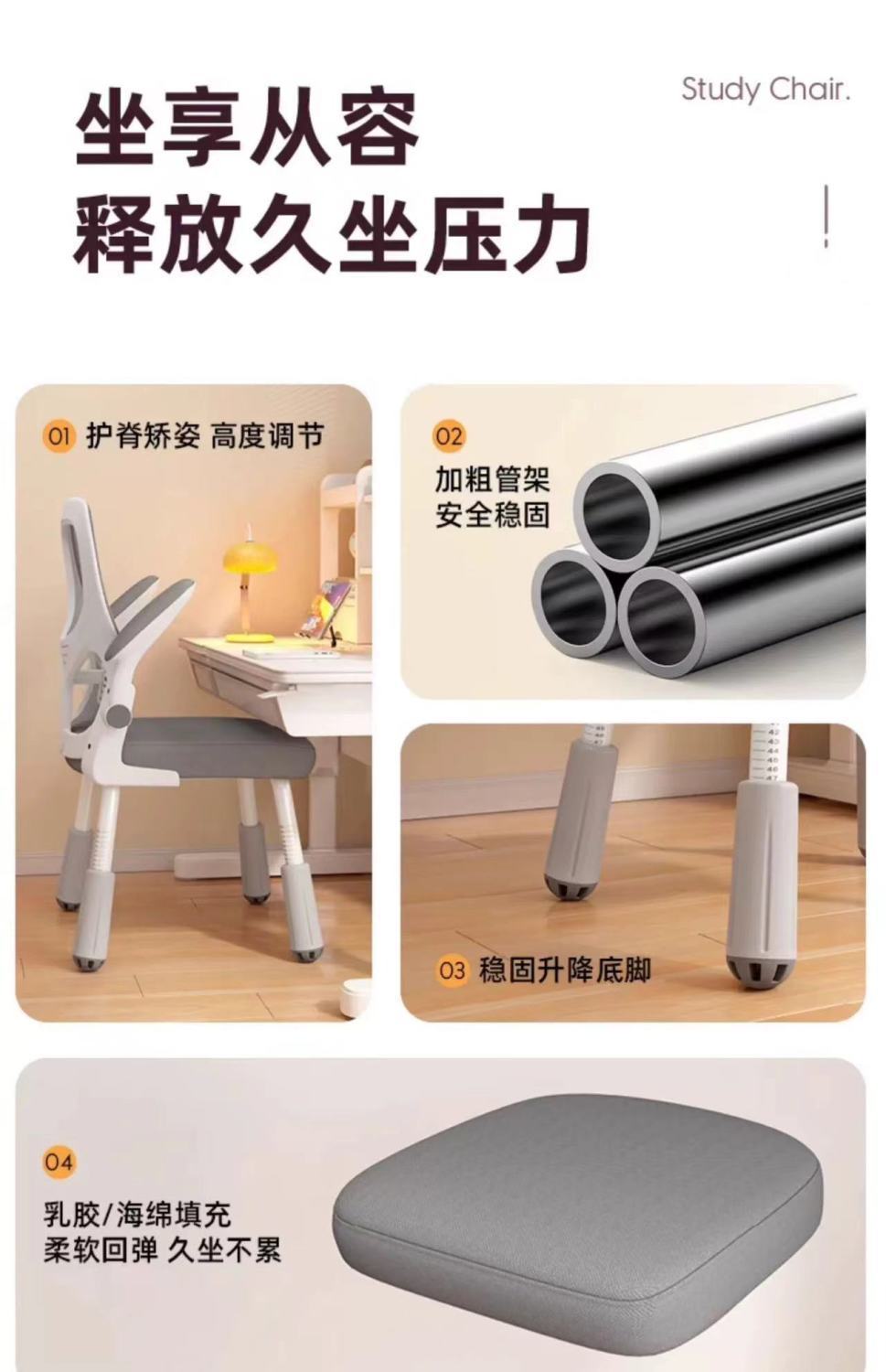 어린이 학습 의자 홈 학생 의자 등받이 교정 앉아 자세 쓰기 의자 조정 가능한 리프팅 좌석