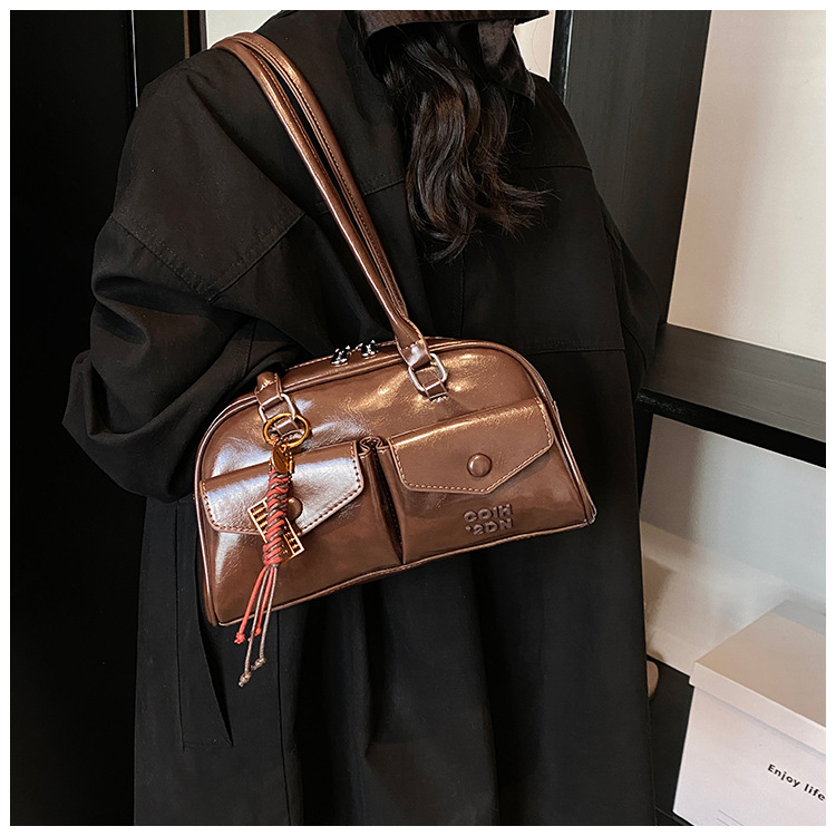2025 새로운 트렌디 한 캐주얼 레트로 더블 포켓 유행 볼링 백 트렌디 한 인터넷 축하 어깨 언더암 가방 여성용 가방스토어 가기