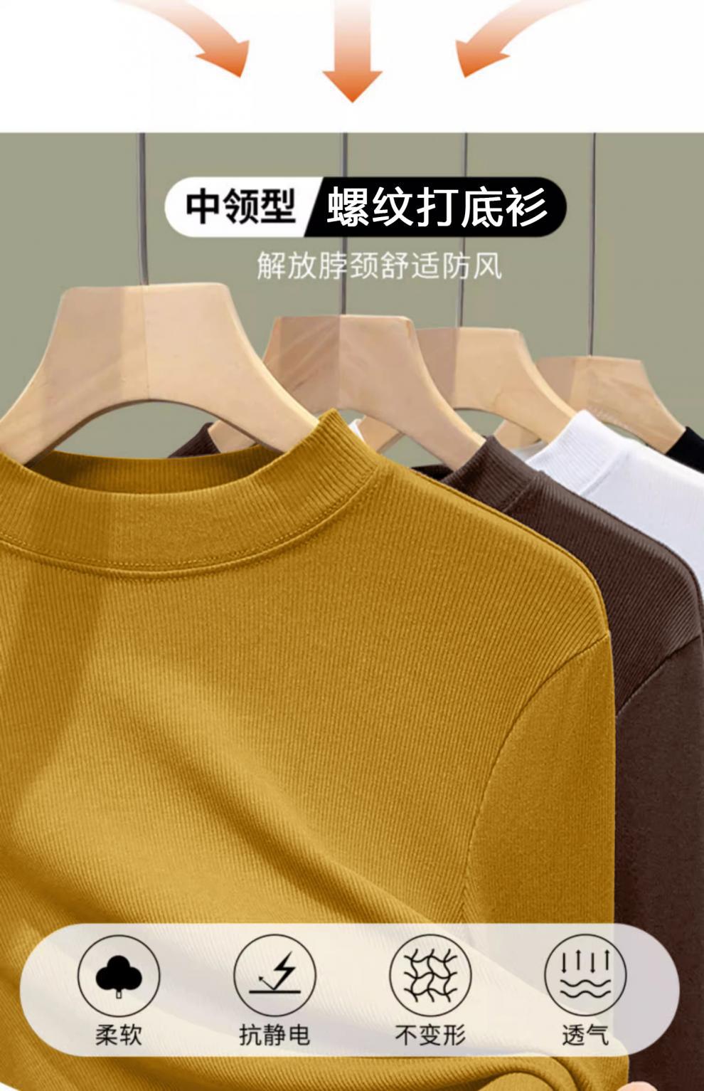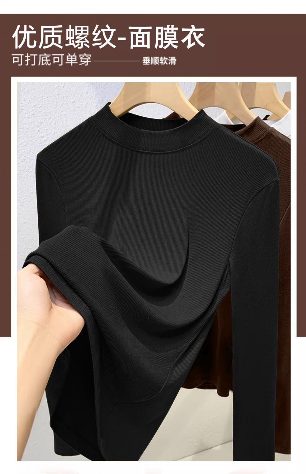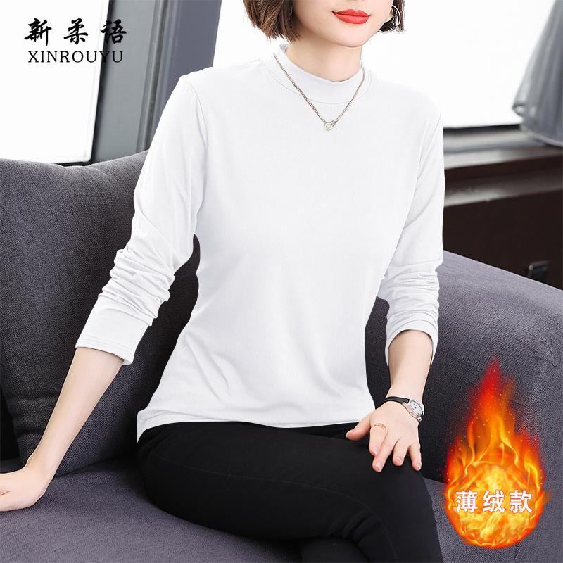 하프 하이 칼라 양면 벨벳 따뜻한 바닥 셔츠 여성의 가을과 겨울 내부 탑 새로운 외국 스타일의 기모 긴팔 티셔츠스토어 가기