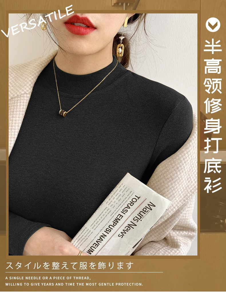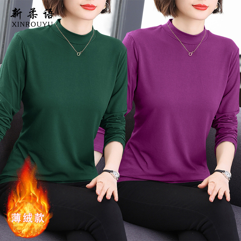 하프 하이 칼라 양면 벨벳 따뜻한 바닥 셔츠 여성의 가을과 겨울 내부 탑 새로운 외국 스타일의 기모 긴팔 티셔츠
