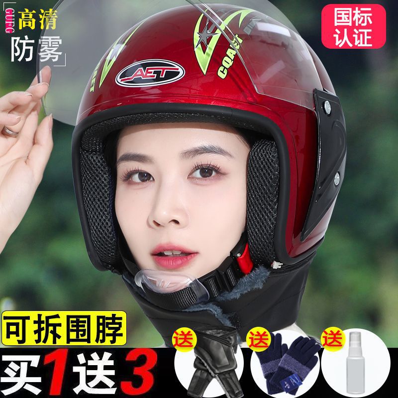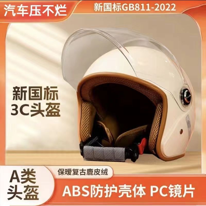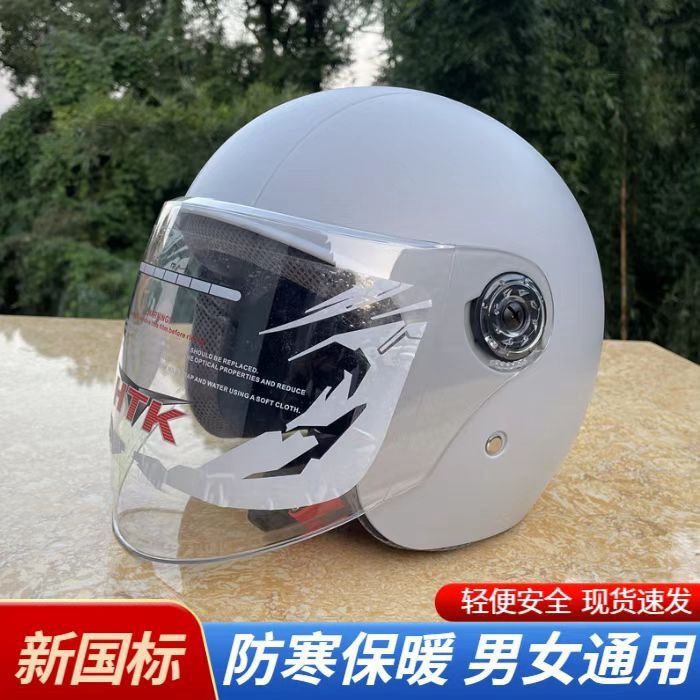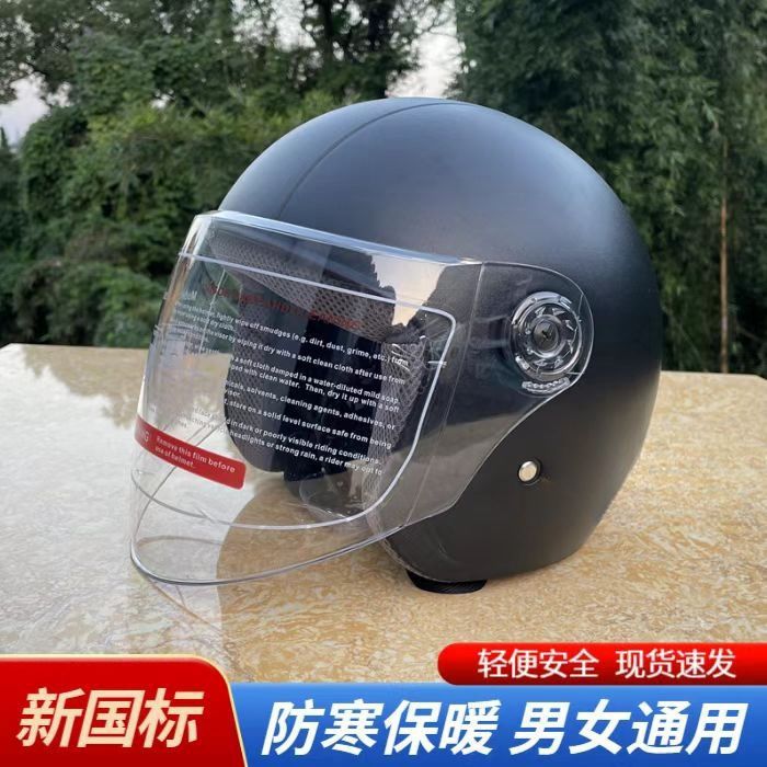 새로운 국가 표준 인증 전기 자동차용 가을 겨울 헬멧, 남녀공용 겨울철 방한 보온 오토바이 헬멧, 라이딩용 방풍 하프 헬멧