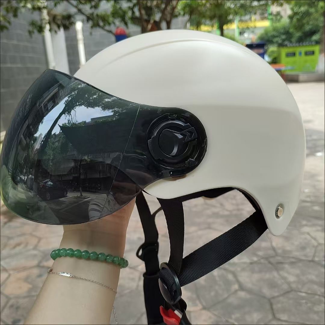 새로운 국가 표준 인증 전기 자동차용 가을 겨울 헬멧, 남녀공용 겨울철 방한 보온 오토바이 헬멧, 라이딩용 방풍 하프 헬멧스토어 가기