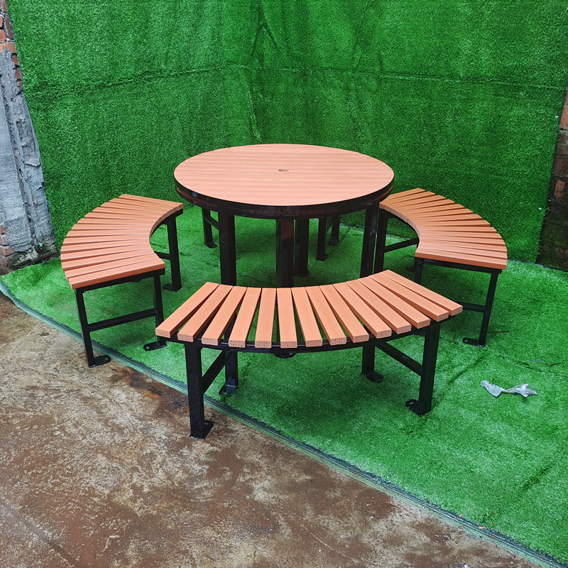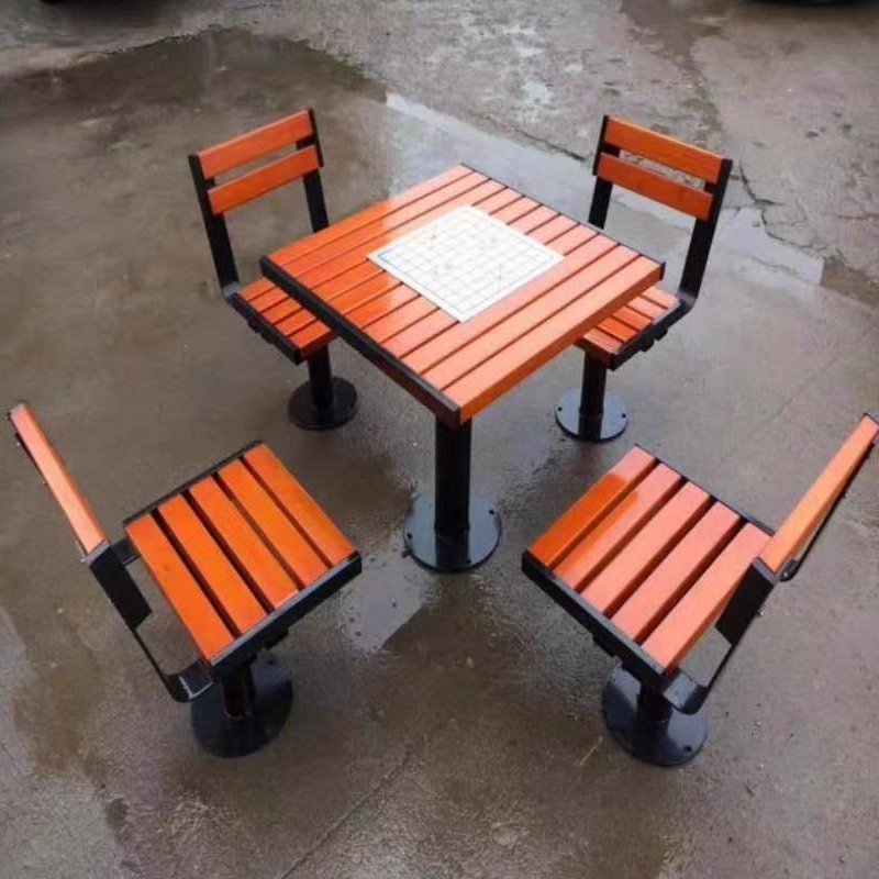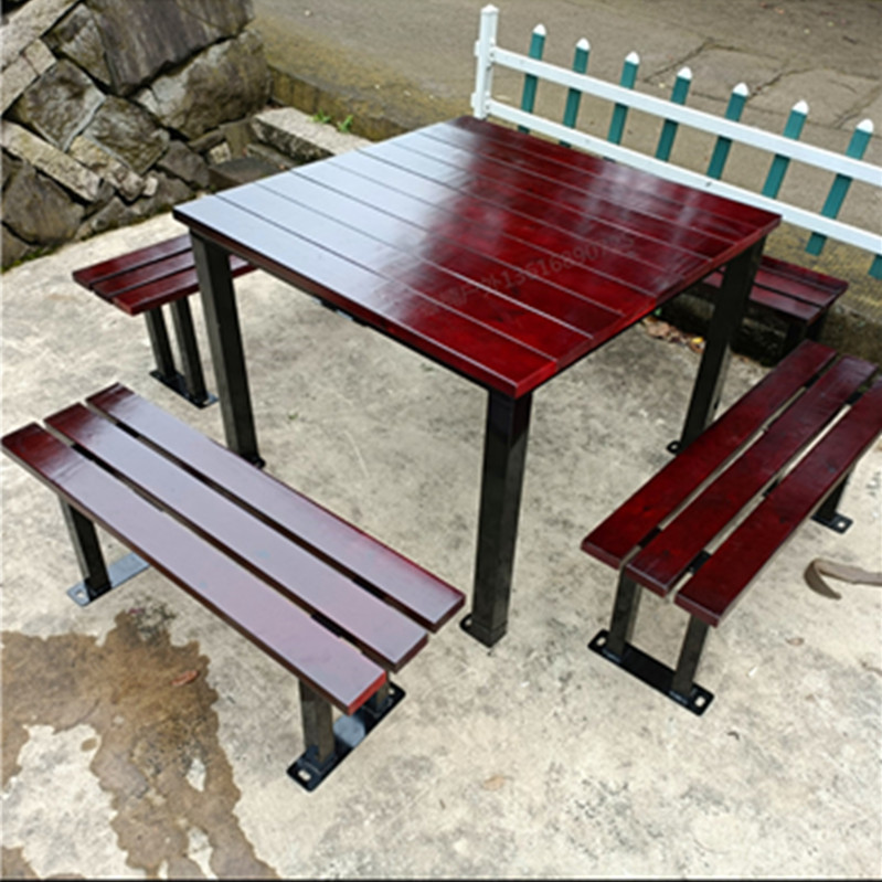 야외 레저 스타일 시트 솔리드 우드 아이언 파크 의자 야외 미끄럼 방지 목재 플라스틱 나무 간단한 안뜰 세트 테이블 및 의자