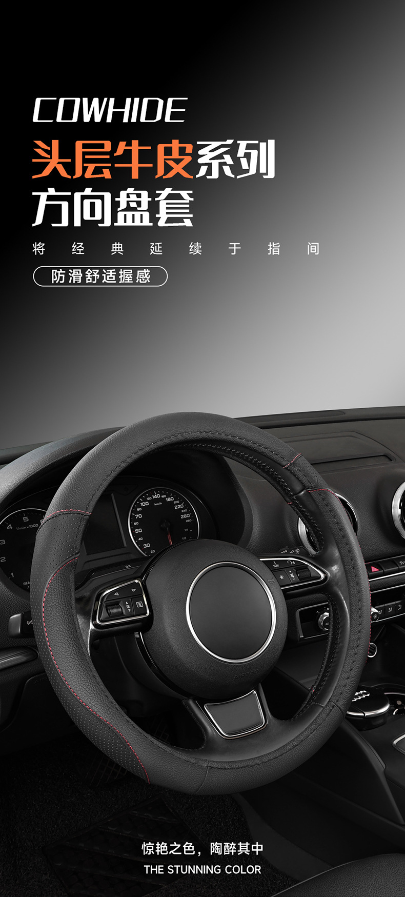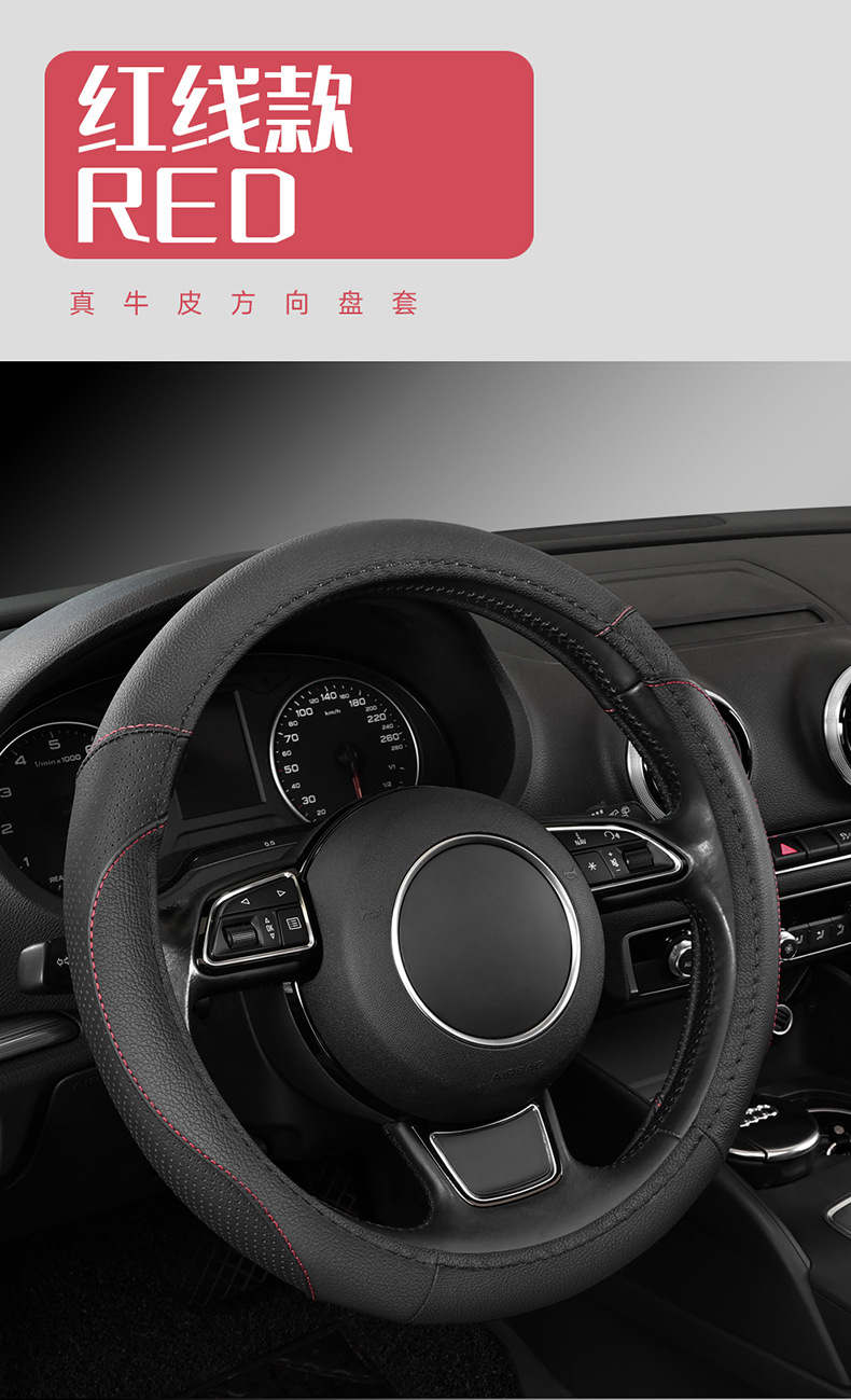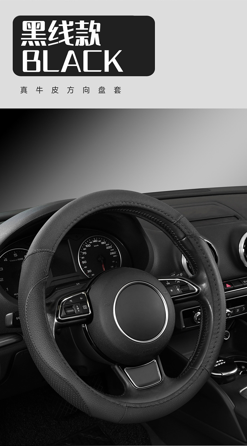 자동차 핸들 커버, 천연 가죽, 사계절 내구성, 미끄럼 방지, 초박형, 통기성, 고급 핸들 커버, 자동차용, 타오바오, 틱톡, 도매