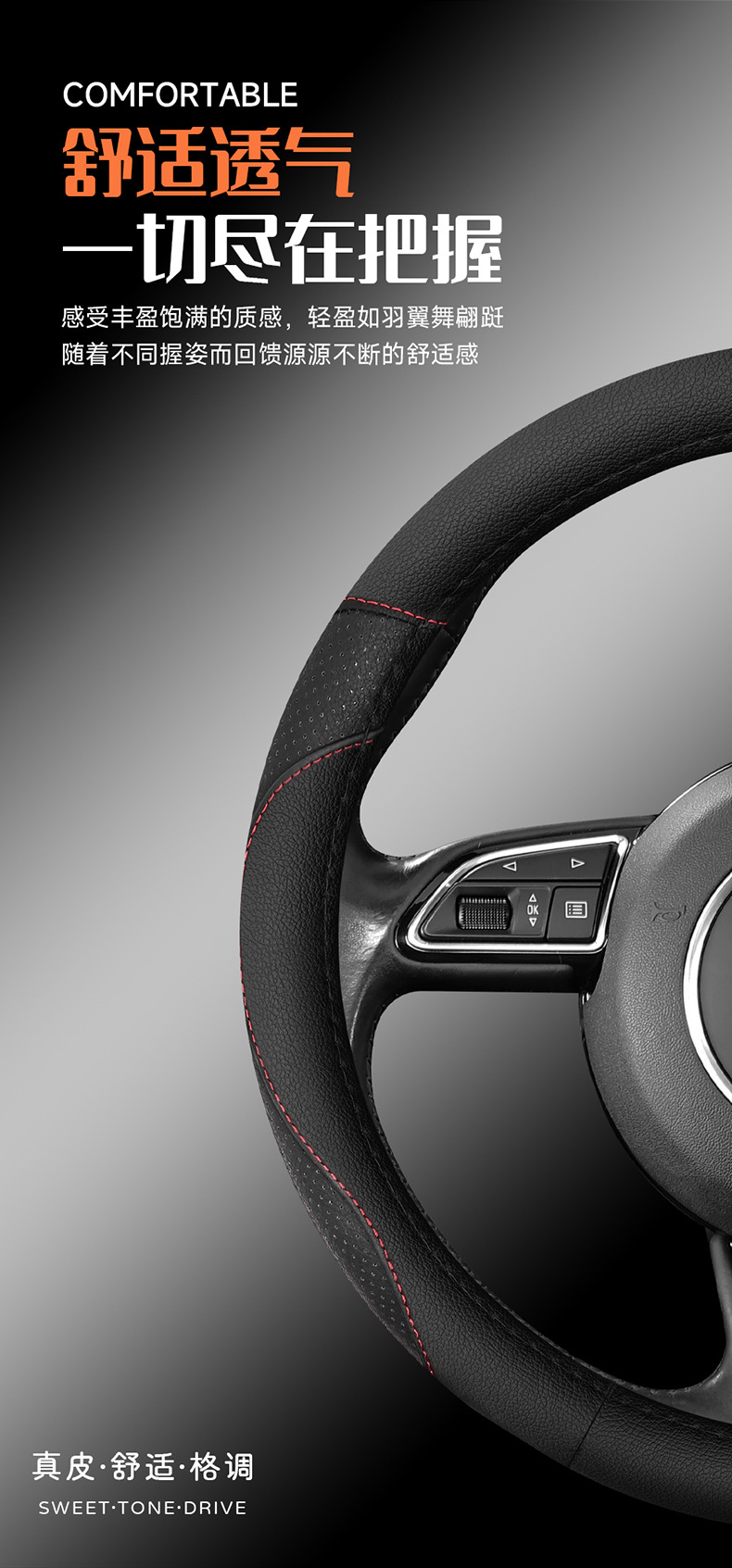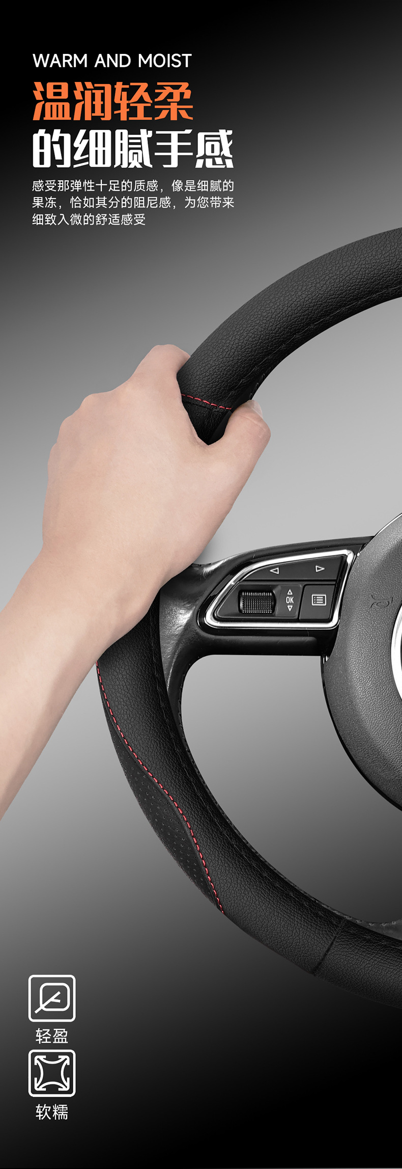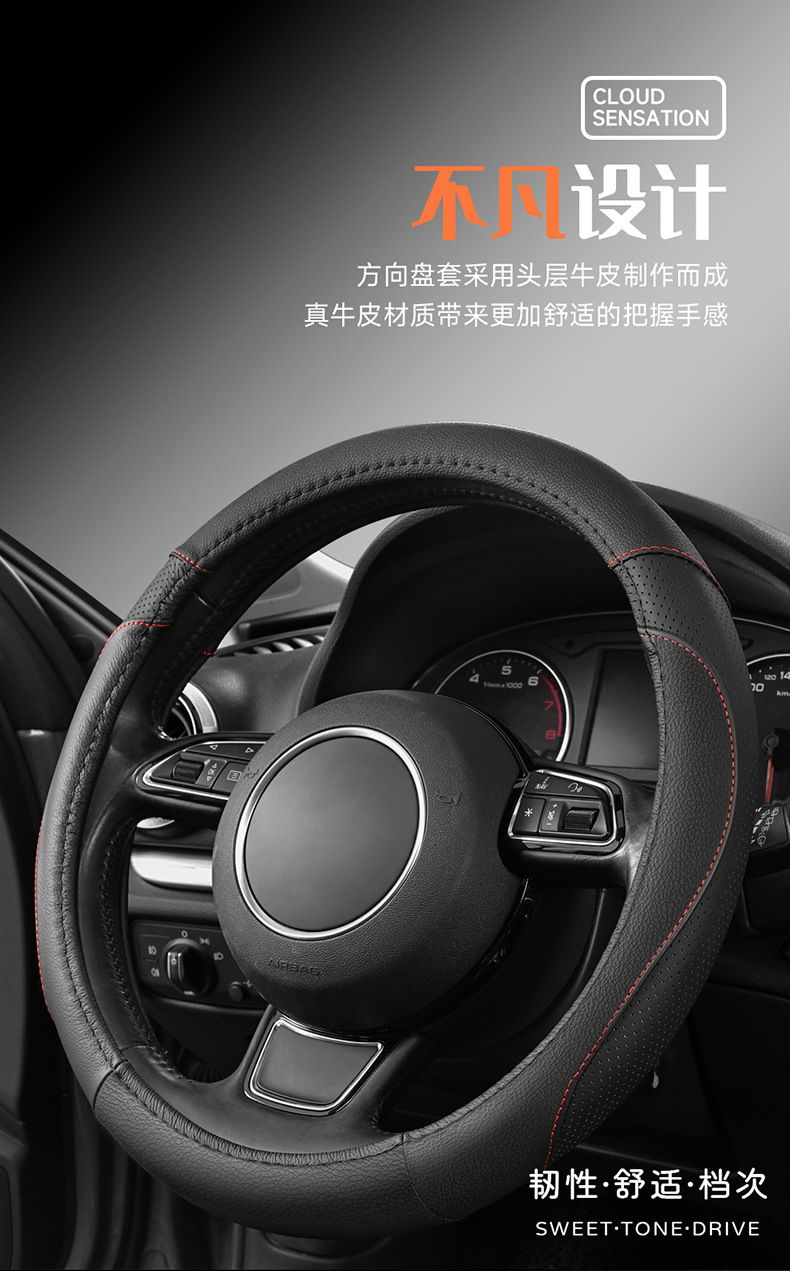 자동차 핸들 커버, 천연 가죽, 사계절 내구성, 미끄럼 방지, 초박형, 통기성, 고급 핸들 커버, 자동차용, 타오바오, 틱톡, 도매