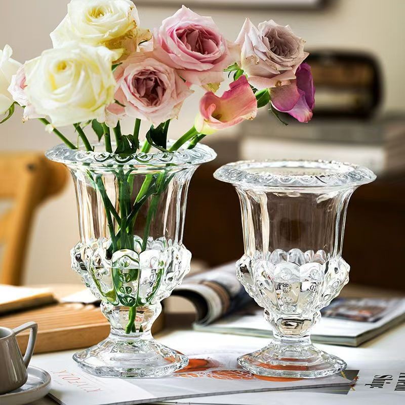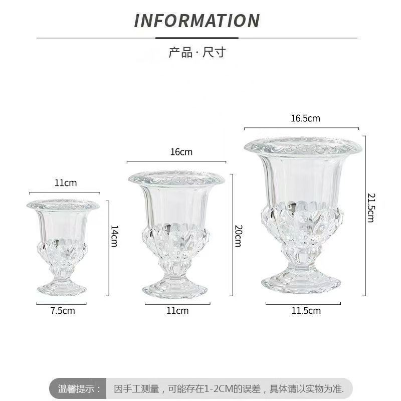 두꺼운 로마 바람 램프 유리 크리스탈 꽃병 유럽식 투명 키 큰 꽃병 캔들 홀더 거실을위한 창조적 인 장식 장식품