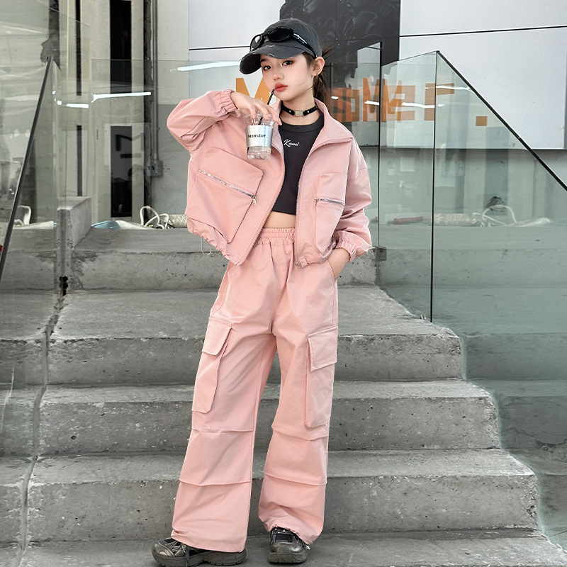 소녀의 봄과 가을 세트 2025 새로운 스타일 유행 아동복 2 조각 세트 어린이 봄 유행 멋진 작업 바지스토어 가기