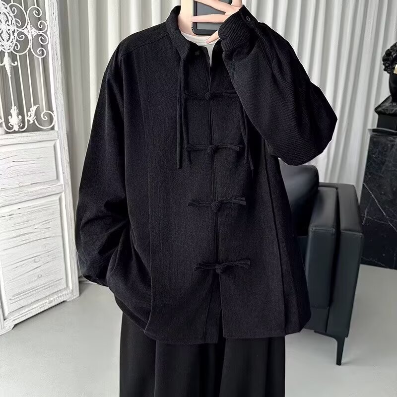 새로운 중국 스타일 중국 스타일 버튼 다운 셔츠 남자의 긴 소매 국가 패션 높은 수준의 셔츠 재킷 봄과 가을 한푸 도교 로브