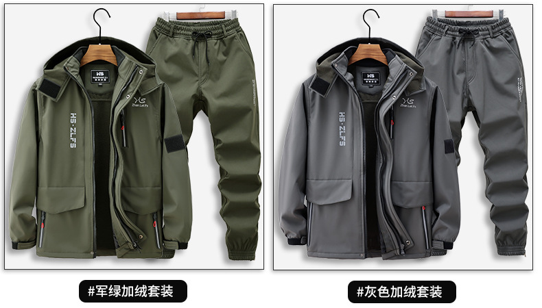 겨울 기모 두꺼운 자켓 세트 남성용 방풍 방수 야외 등산 세트 방한 따뜻한 내마모성 작업복