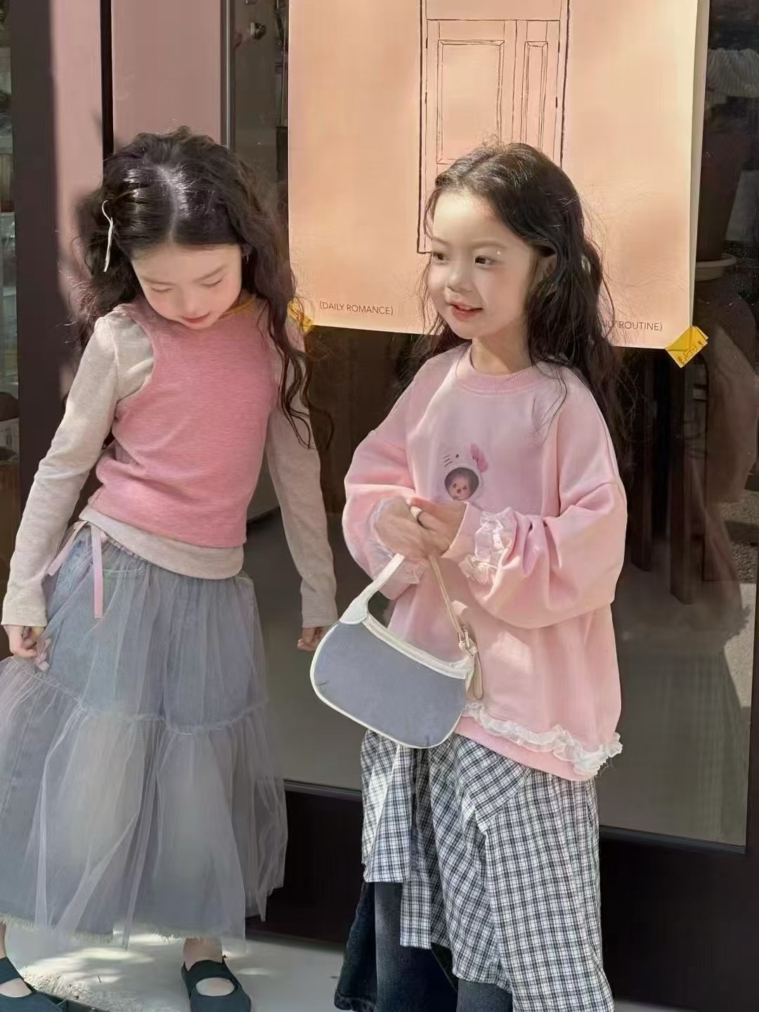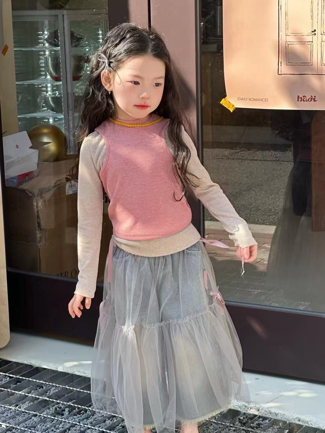 소녀의 봄 새로운 한국식 달콤한 조끼 투피스 티셔츠 어린이 거즈 유럽식 패션 청바지스토어 가기