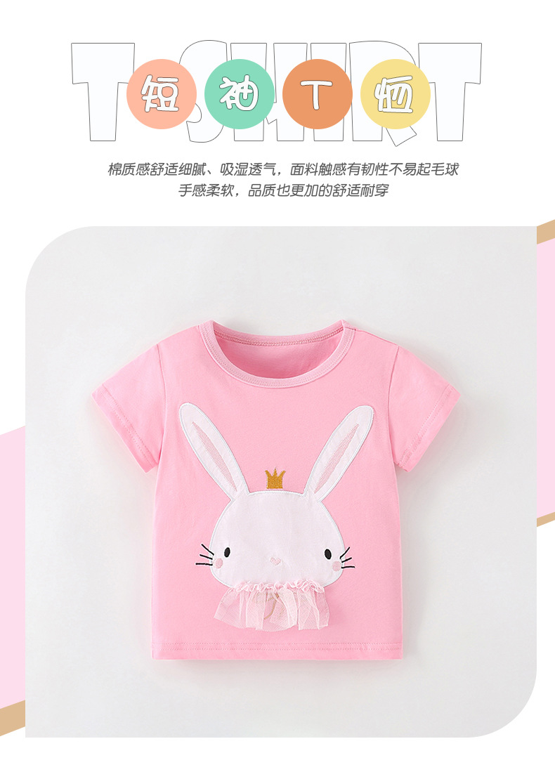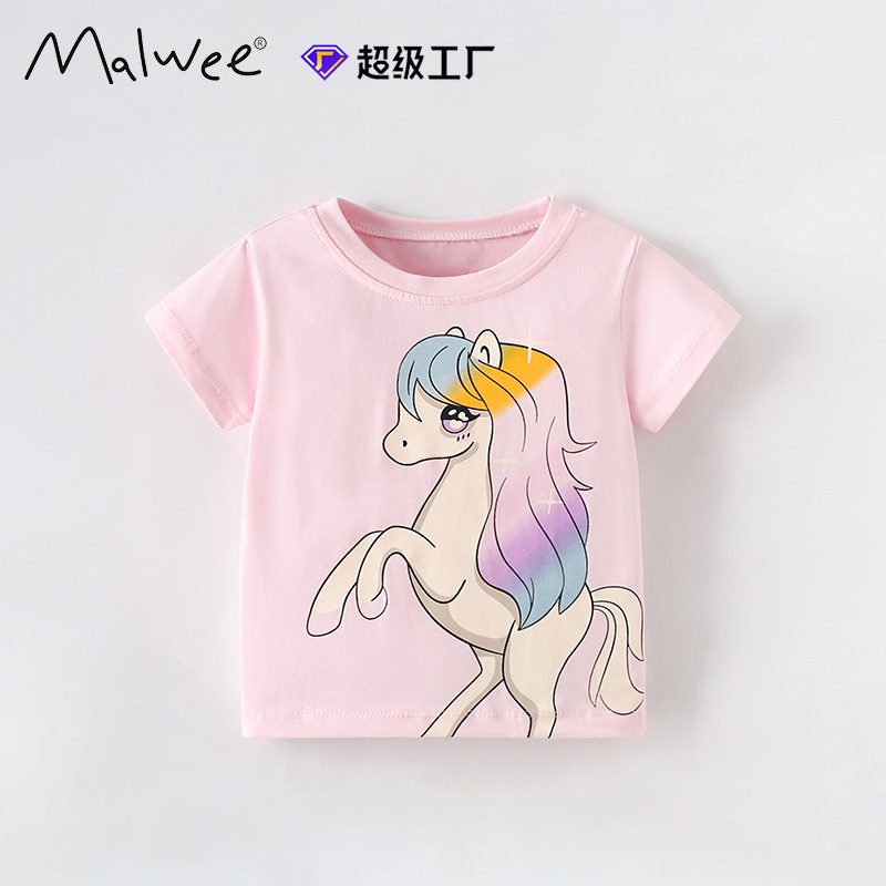 국경 직접 공급 몰위 소녀 티셔츠 여름 새로운 유럽과 미국 어린이 둥근 목 셔츠 짧은 소매 귀여운 아동복