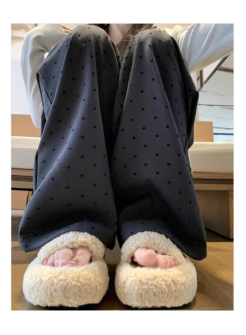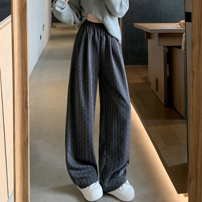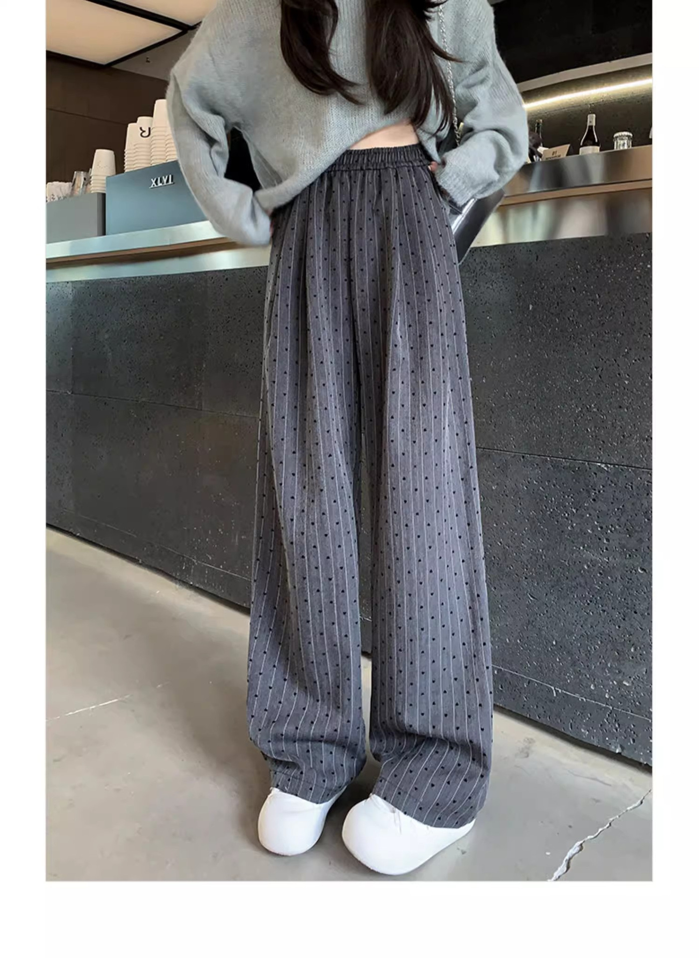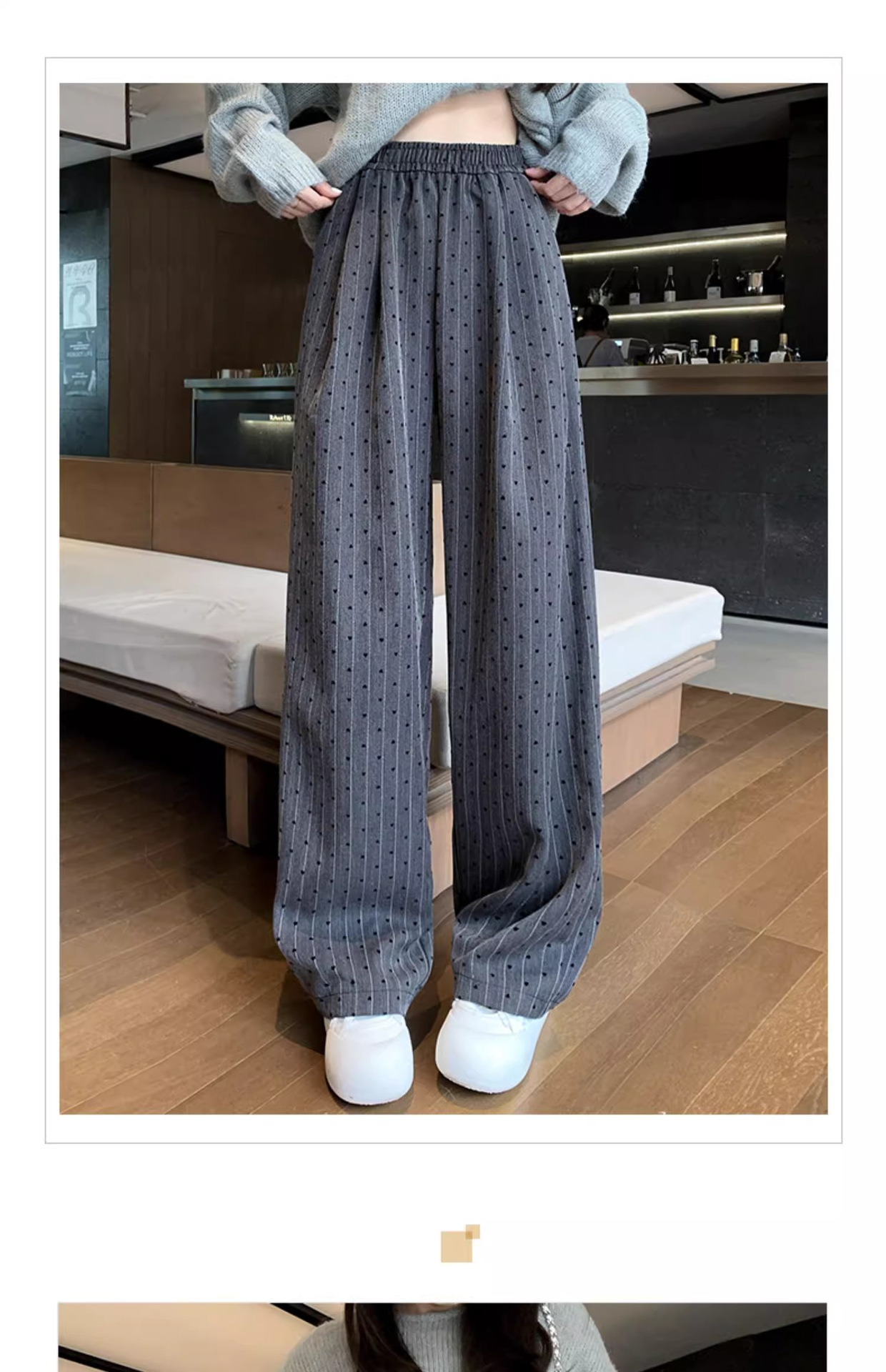 탄성 허리 사랑 웨이브 포인트 넓은 다리 바지 여성 디자인 감각 새로운 봄과 가을 복고풍 캐주얼 세트 바지 높은 허리 바닥 바지