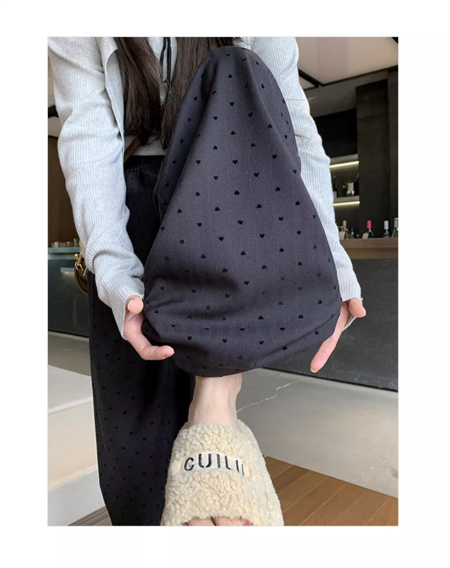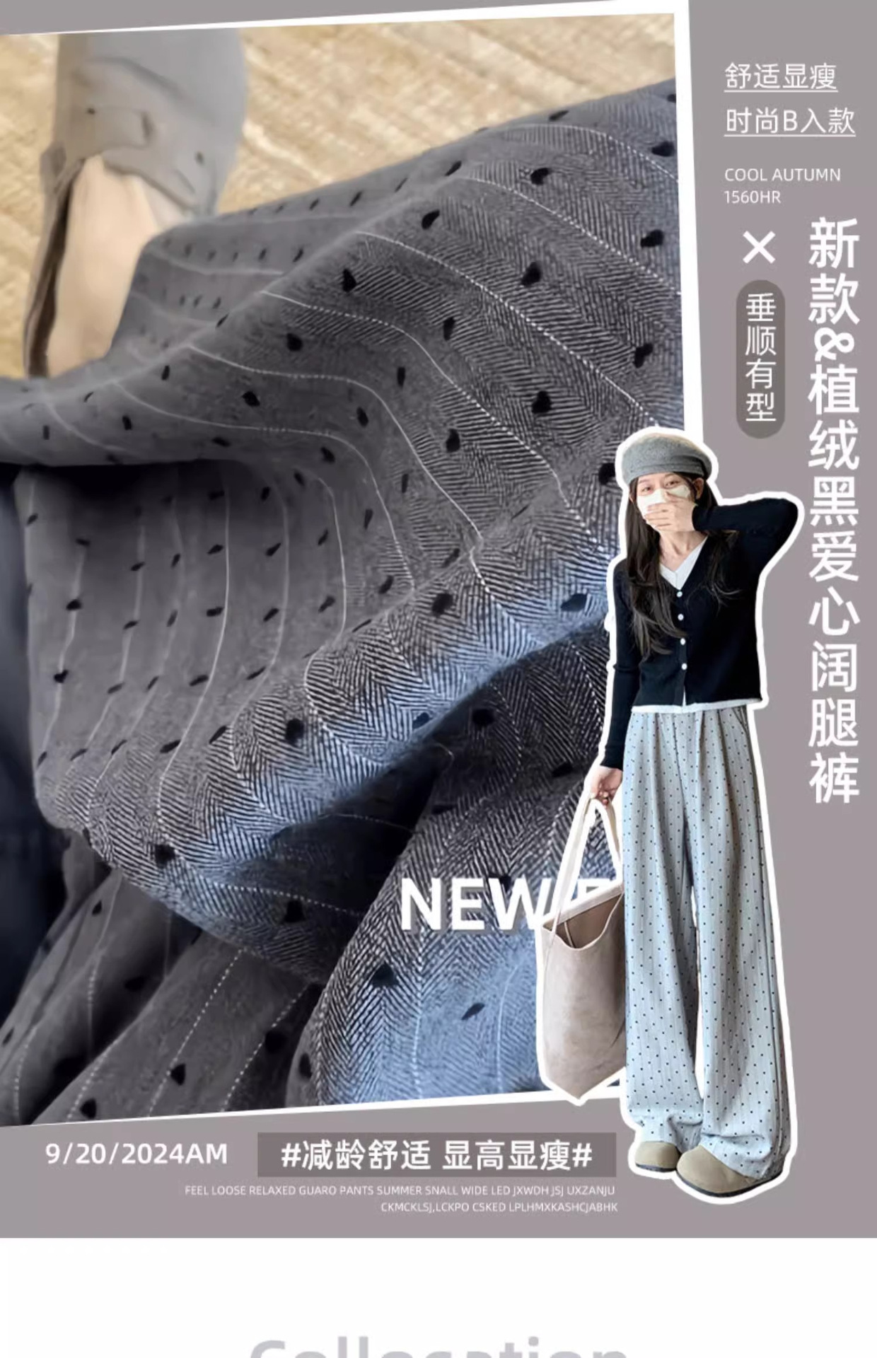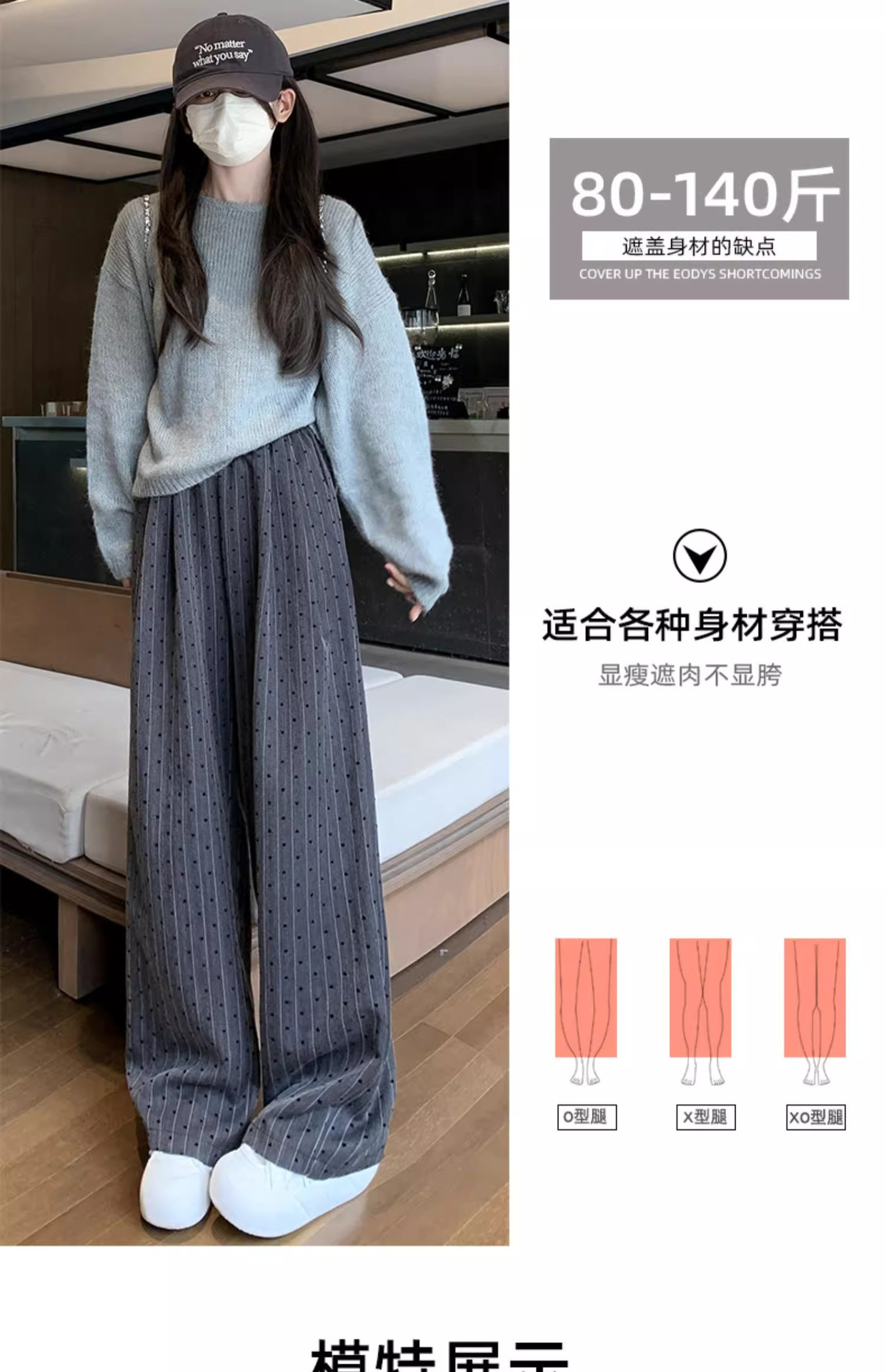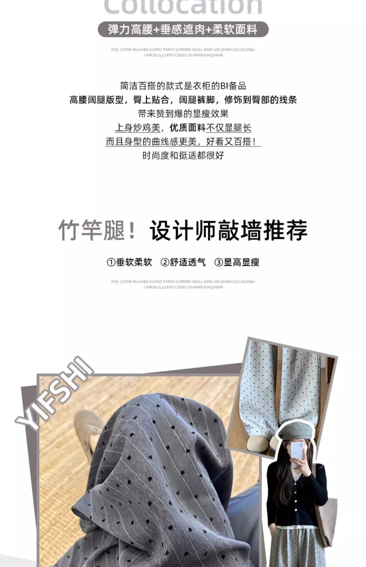 탄성 허리 사랑 웨이브 포인트 넓은 다리 바지 여성 디자인 감각 새로운 봄과 가을 복고풍 캐주얼 세트 바지 높은 허리 바닥 바지