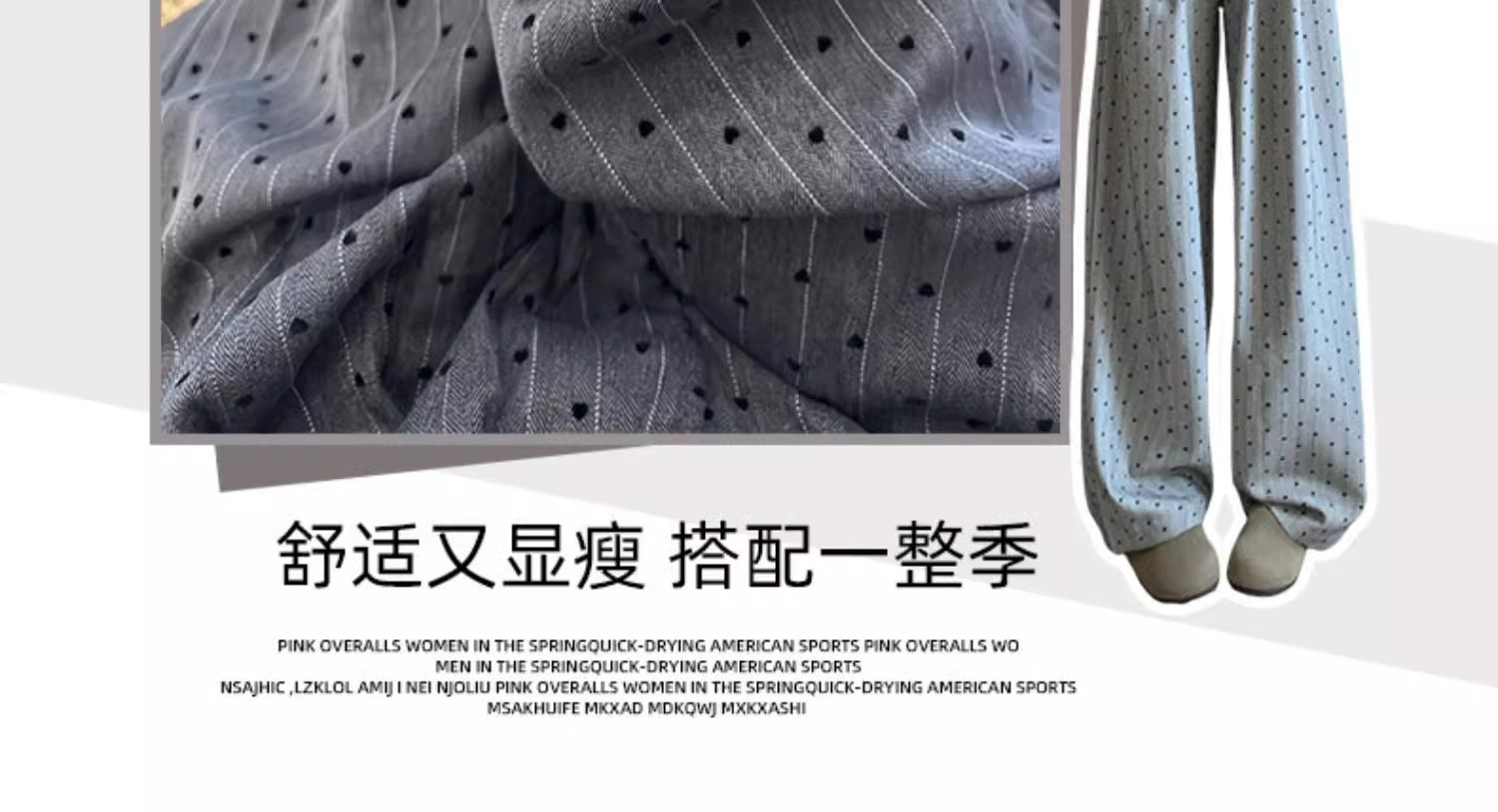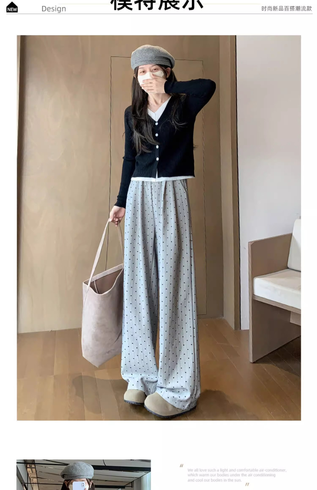 탄성 허리 사랑 웨이브 포인트 넓은 다리 바지 여성 디자인 감각 새로운 봄과 가을 복고풍 캐주얼 세트 바지 높은 허리 바닥 바지스토어 가기