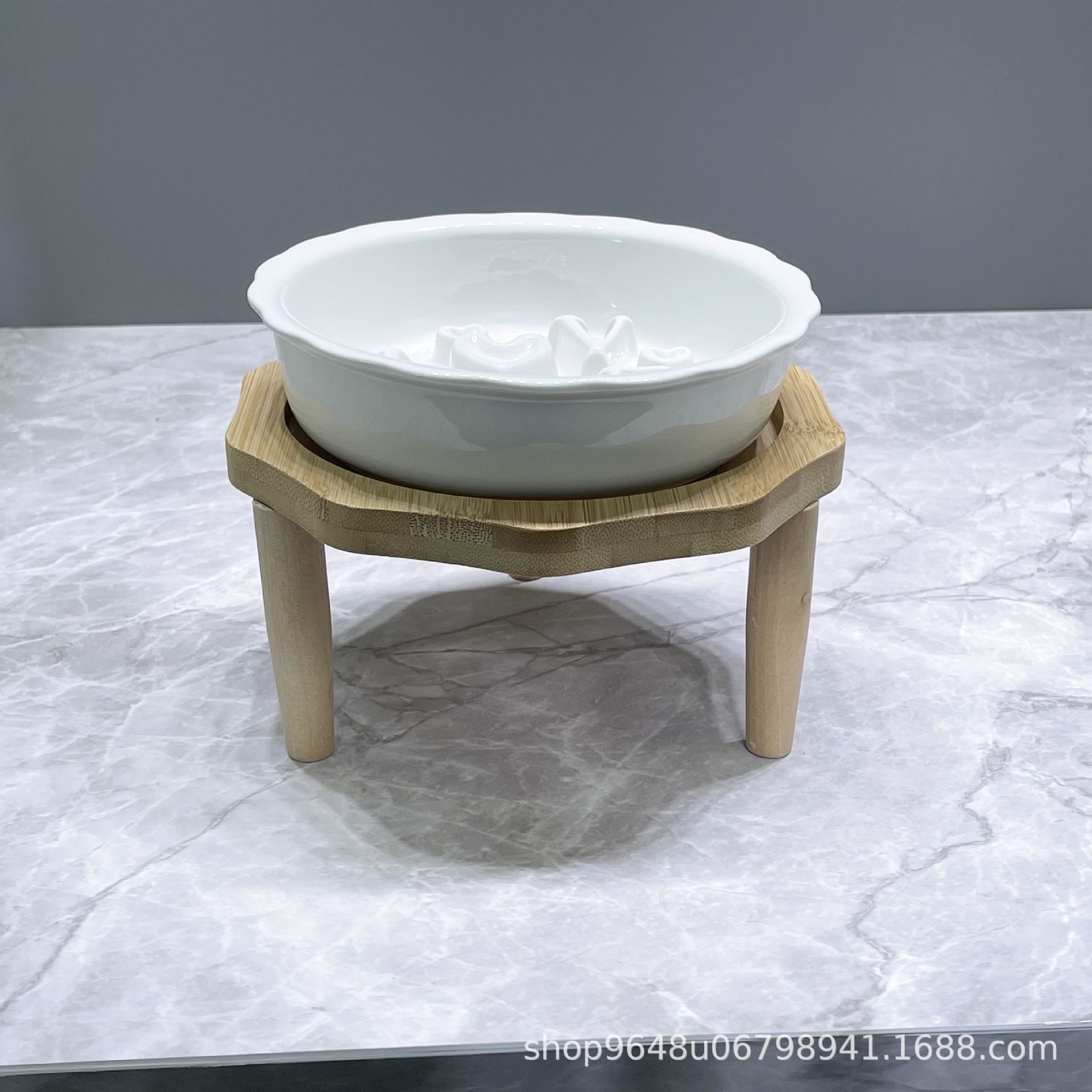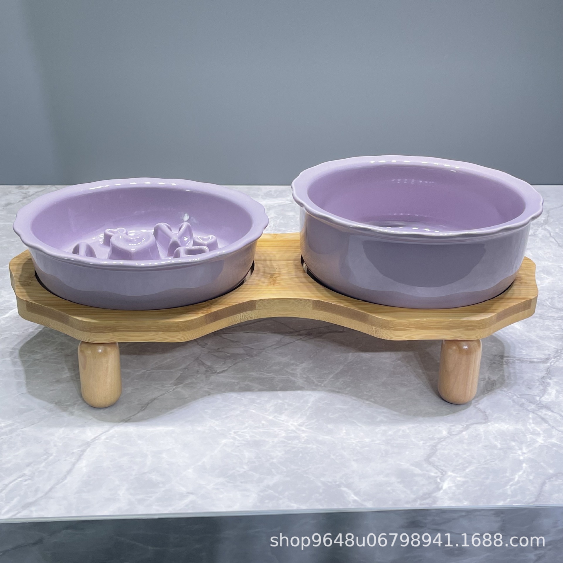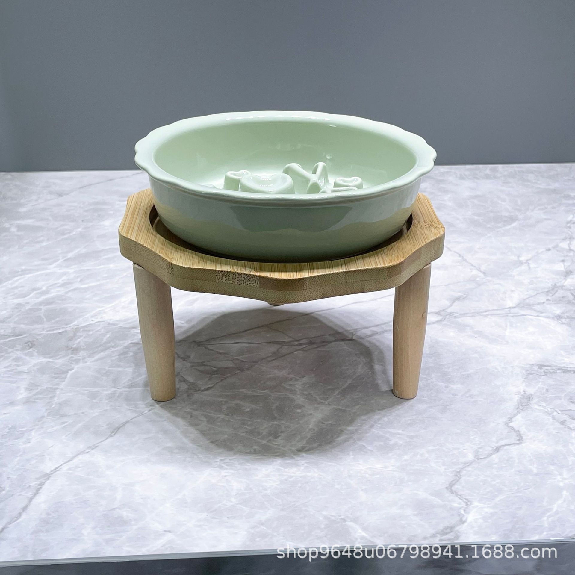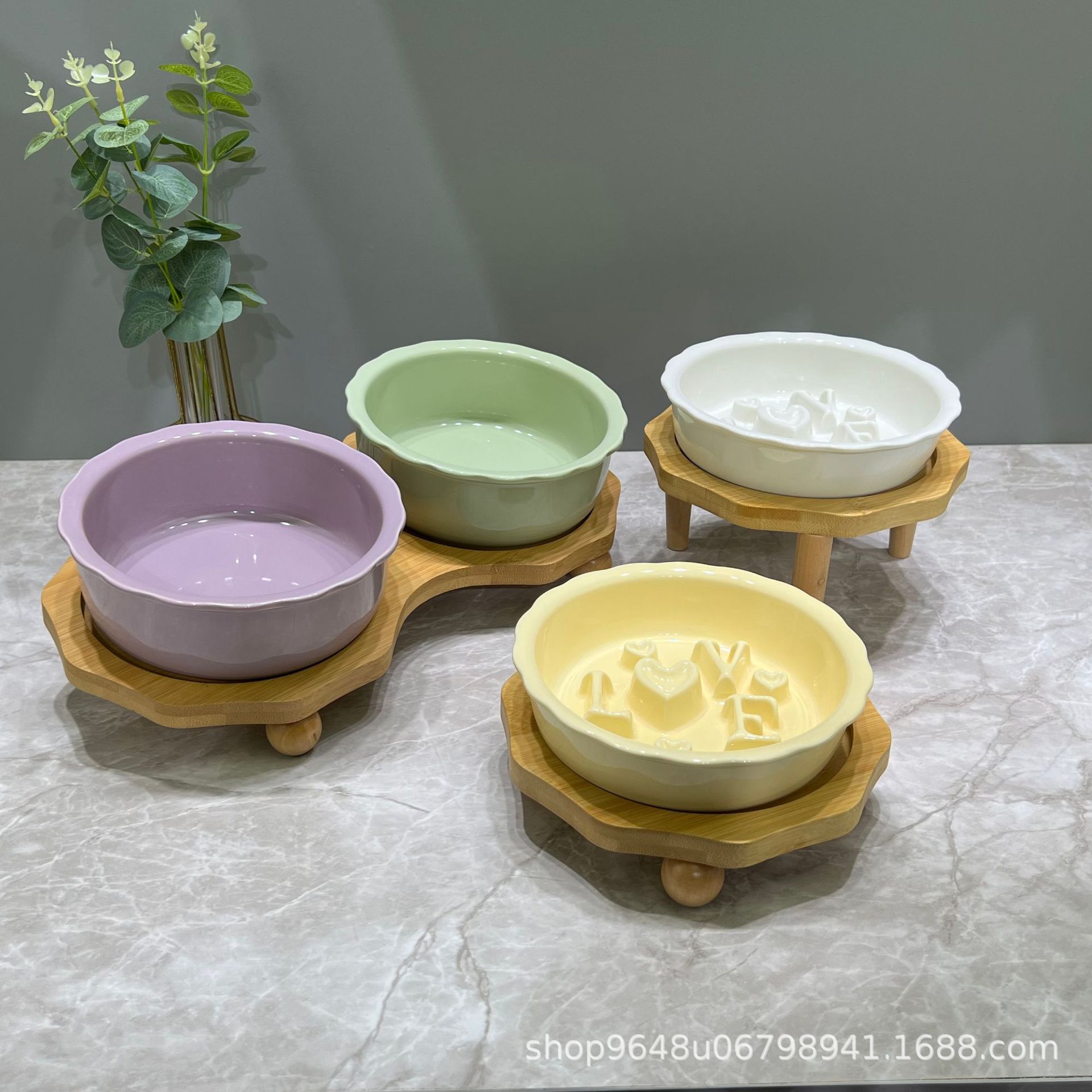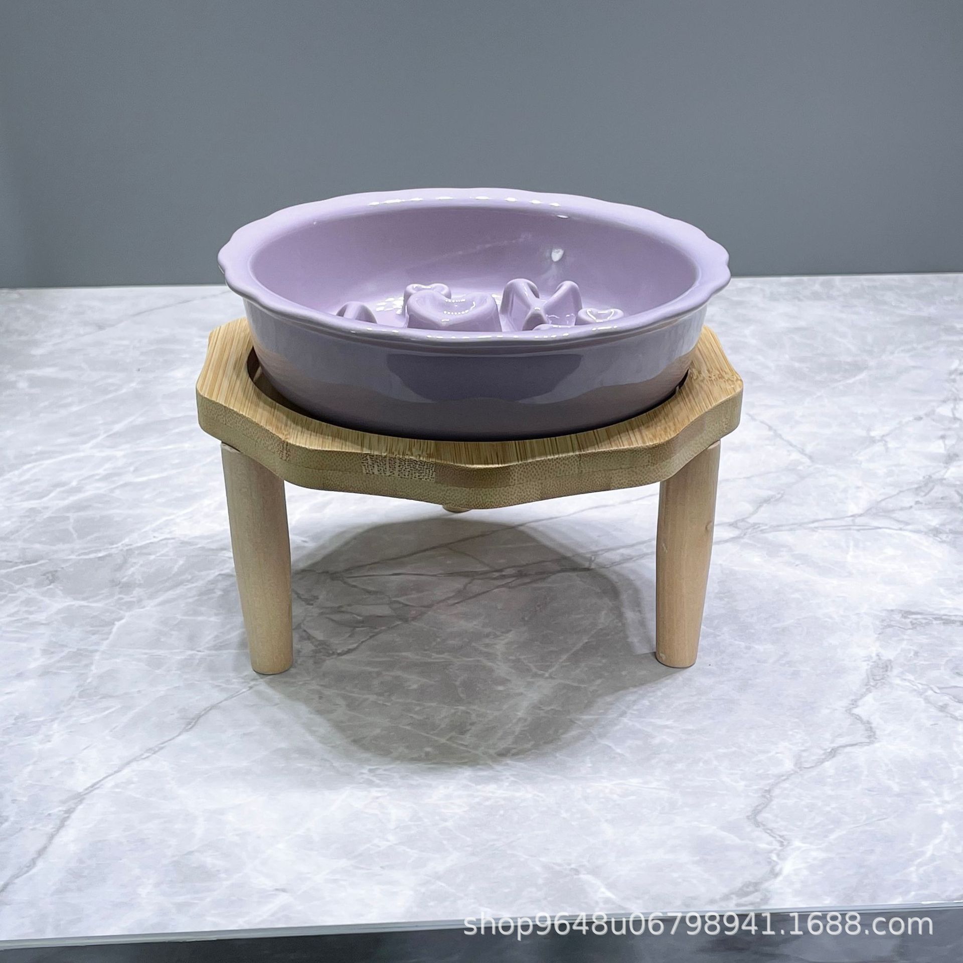 애완동물용 세라믹 그릇, 슬로우 푸드 그릇, 고양이 그릇, 강아지 그릇, 물그릇, 질식 방지 고양이 및 강아지 식기, 식기, 그릇 용품, 높은 다리가 있는 나무 받침대