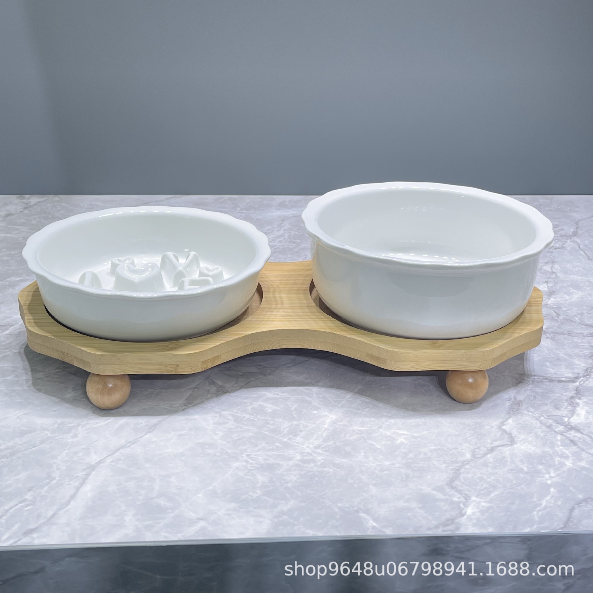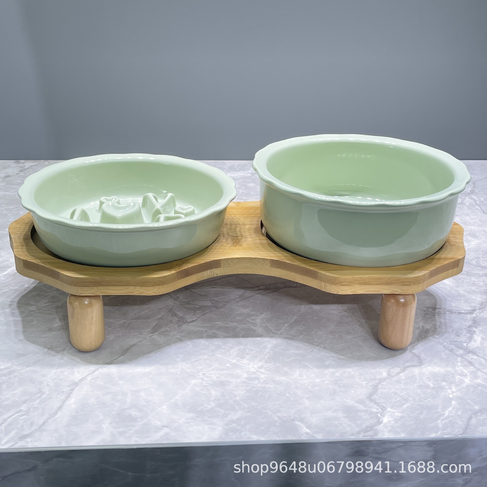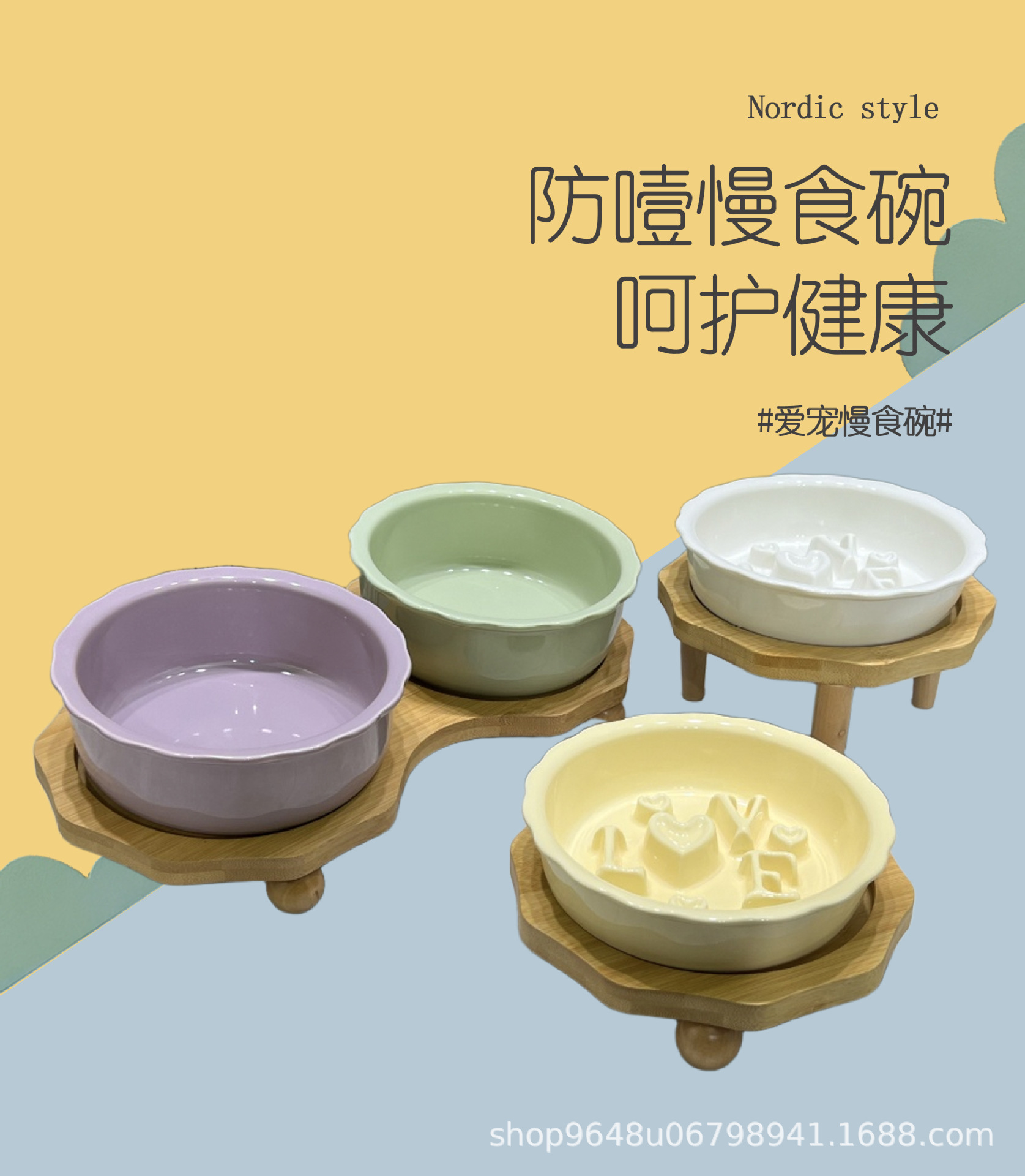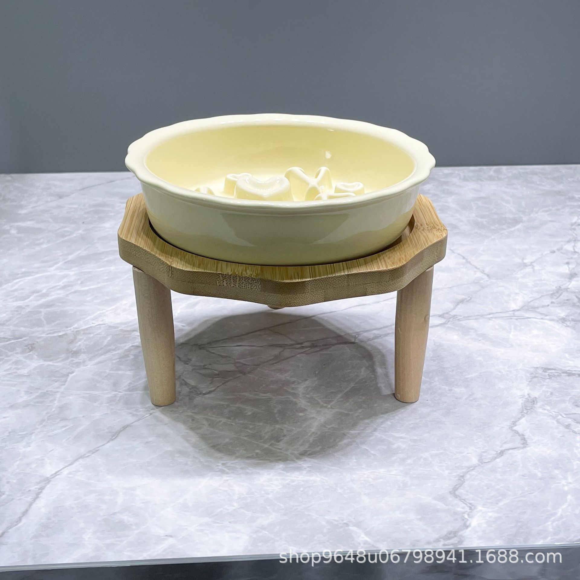 애완동물용 세라믹 그릇, 슬로우 푸드 그릇, 고양이 그릇, 강아지 그릇, 물그릇, 질식 방지 고양이 및 강아지 식기, 식기, 그릇 용품, 높은 다리가 있는 나무 받침대