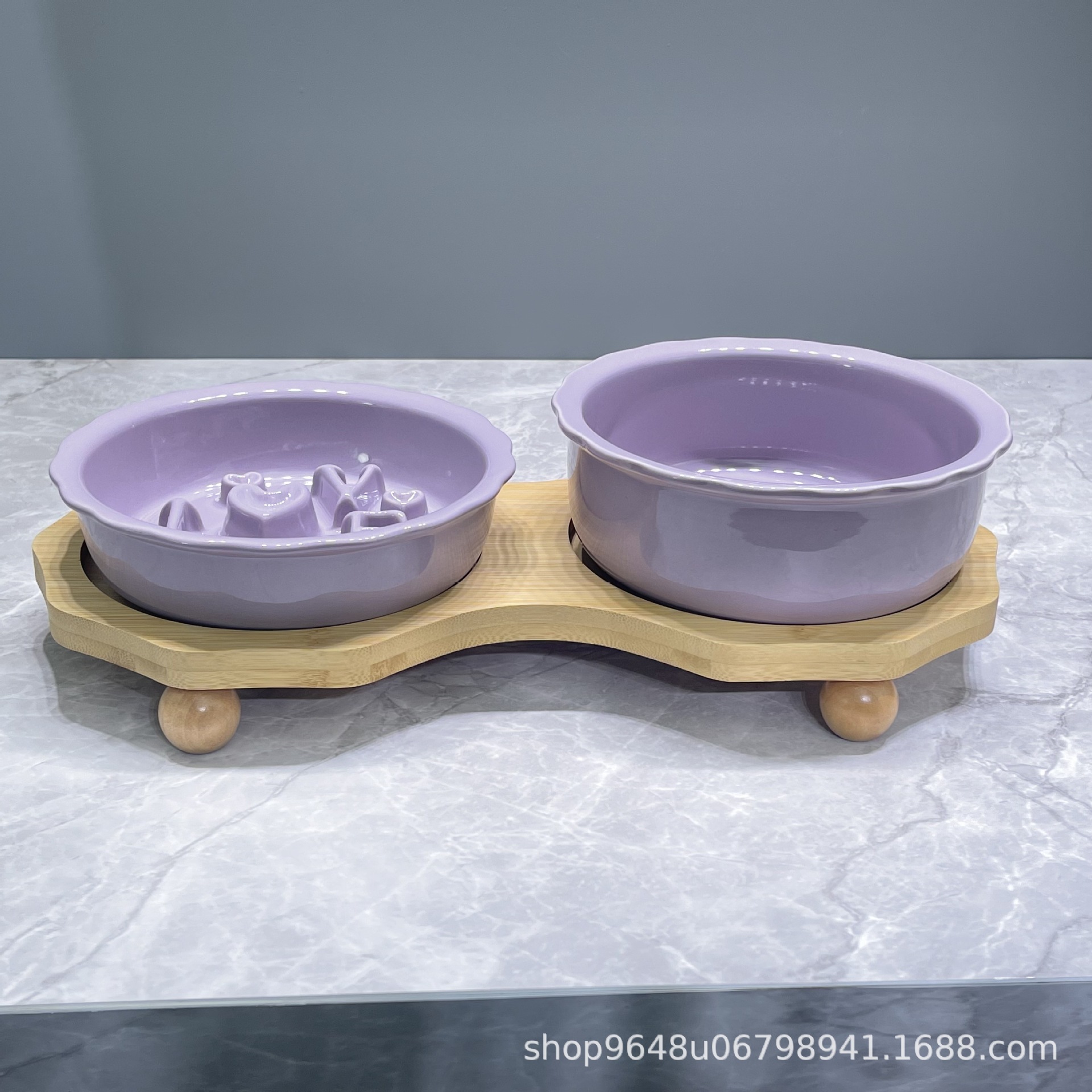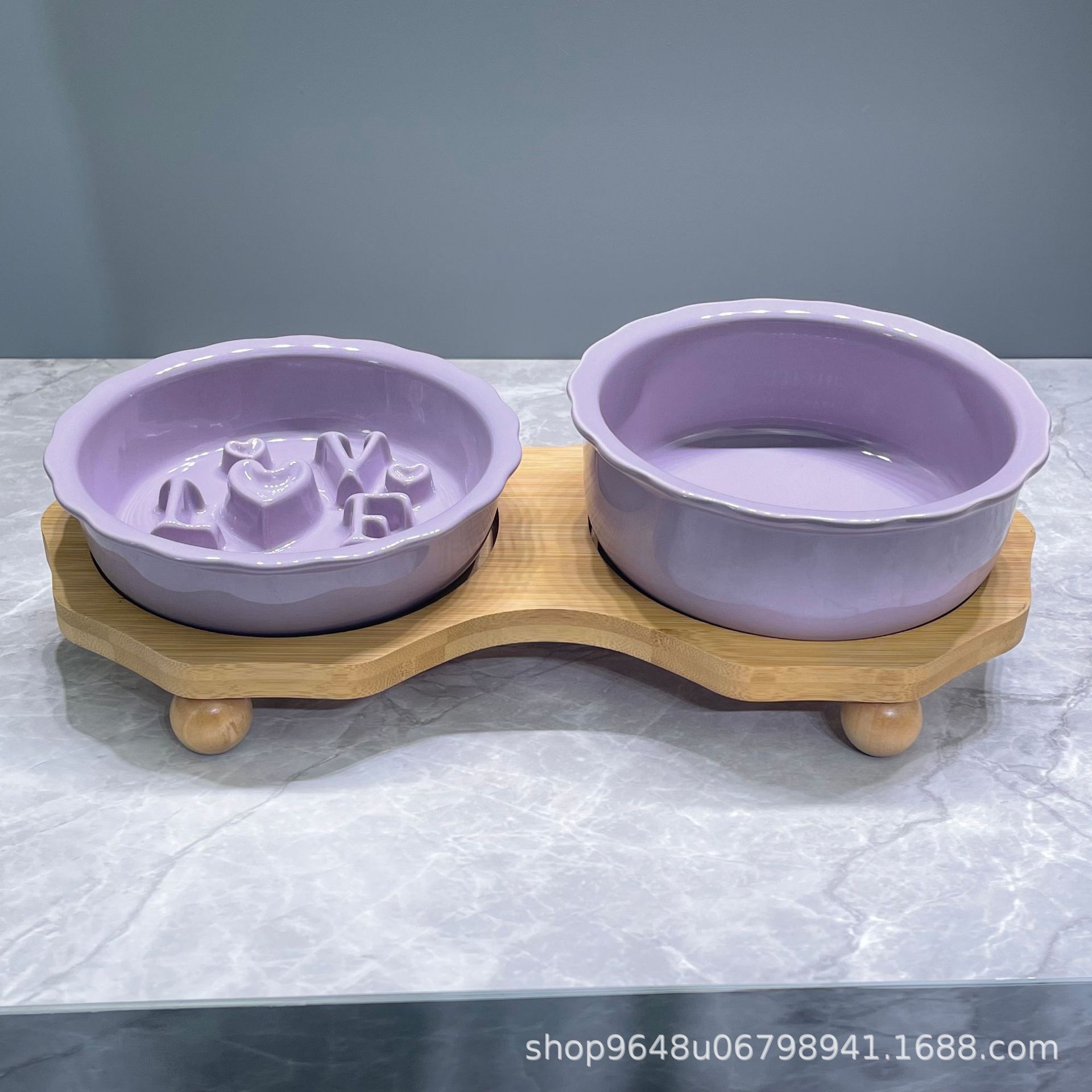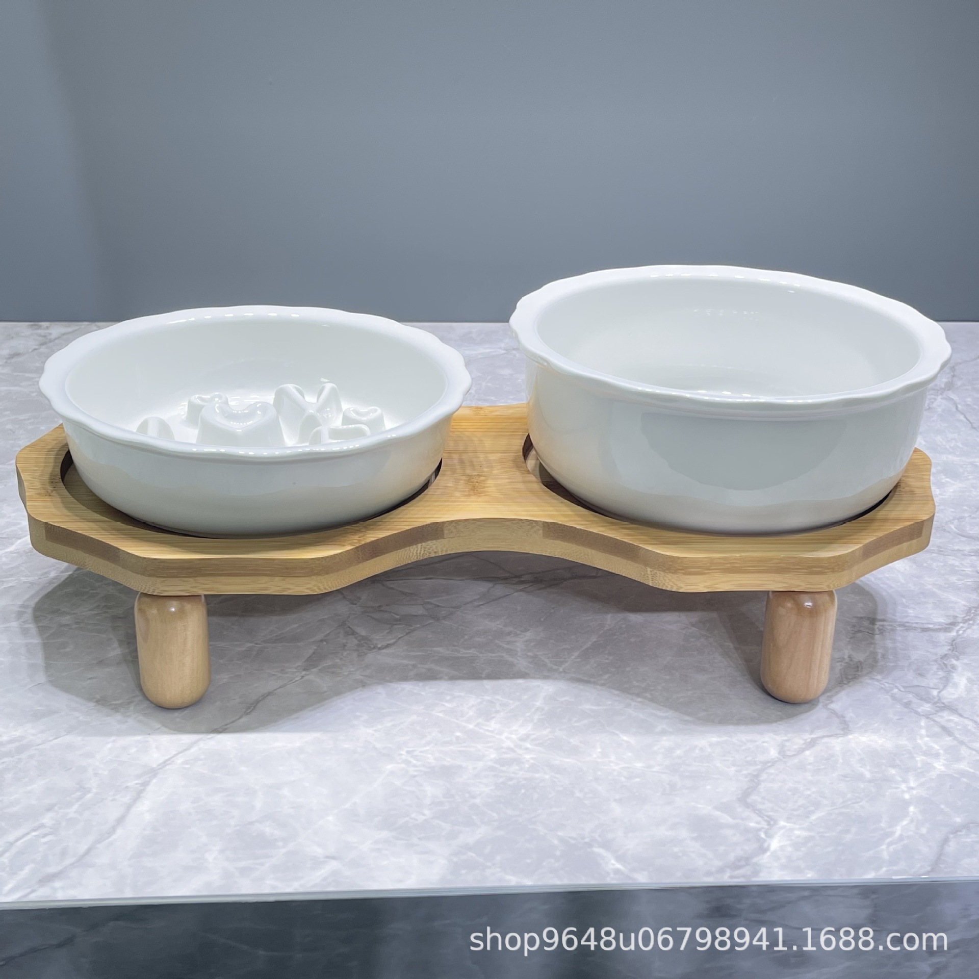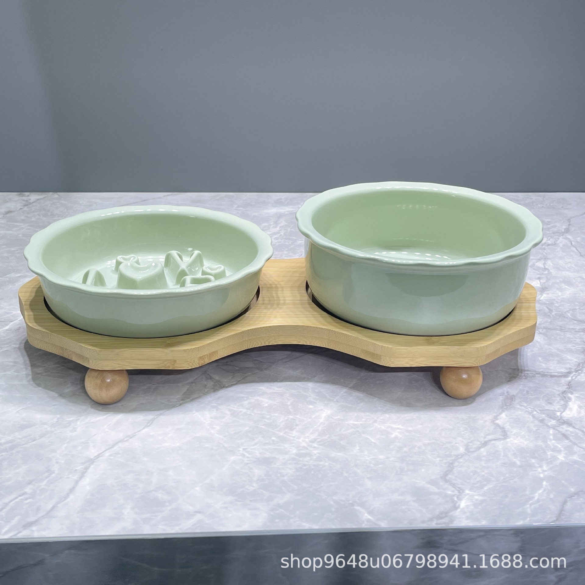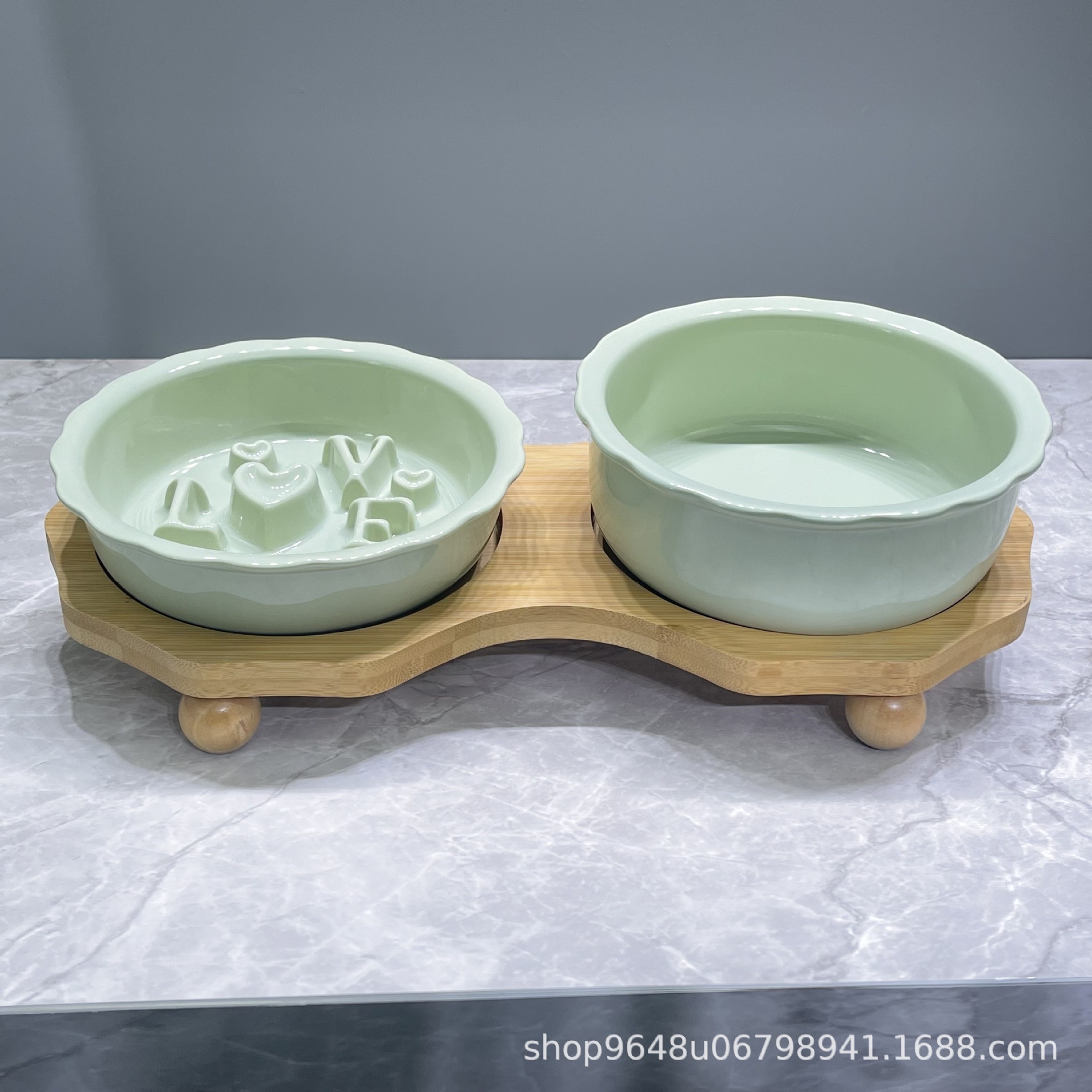 애완동물용 세라믹 그릇, 슬로우 푸드 그릇, 고양이 그릇, 강아지 그릇, 물그릇, 질식 방지 고양이 및 강아지 식기, 식기, 그릇 용품, 높은 다리가 있는 나무 받침대